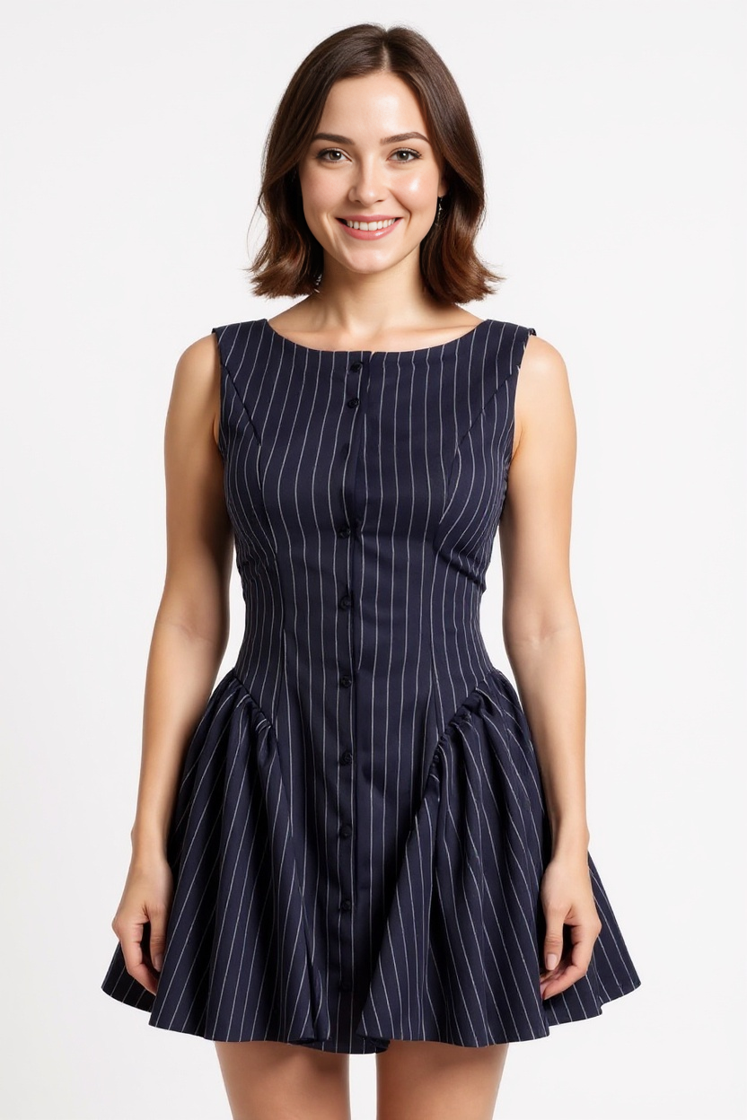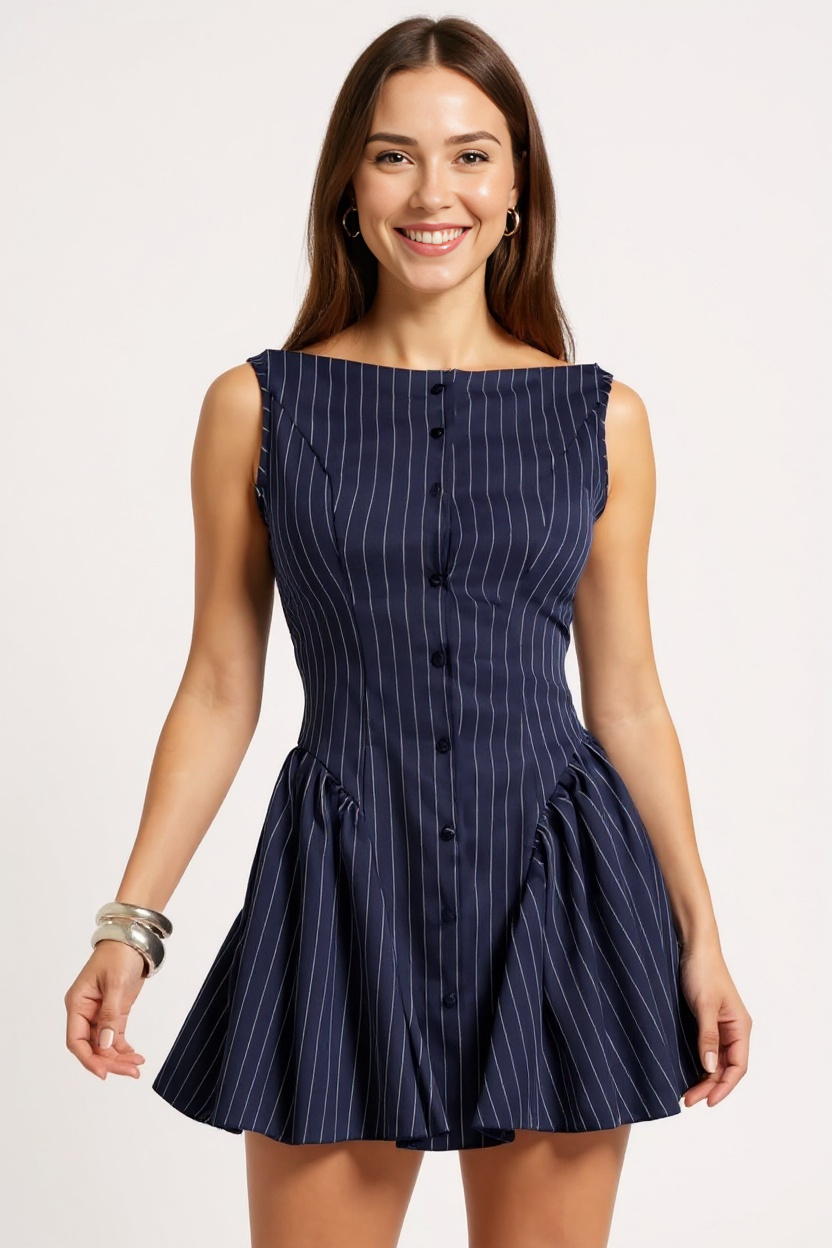 Step out in style with the Navy City Dress, featuring a charming pinstripe pattern and a flattering fit-and-flare silhouette. This playful dress hugs your waist and flows beautifully, perfect for twirling through your day or night. Whether you're headed to brunch or a casual meeting, it adds a fresh, fun vibe to your wardrobe while keeping you comfy and confident.
