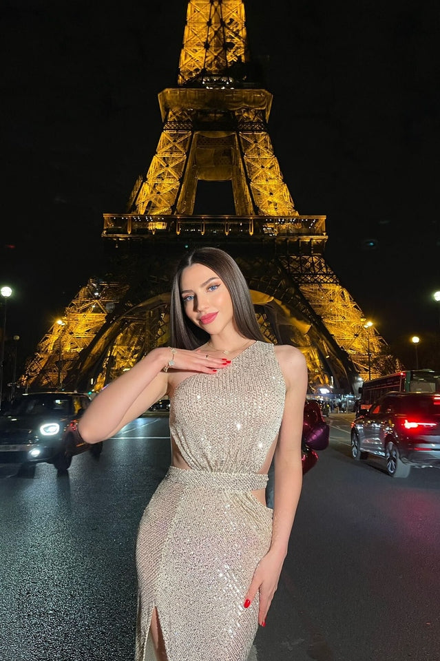 One Shoulder Sequins Cut Out Split Maxi Dress