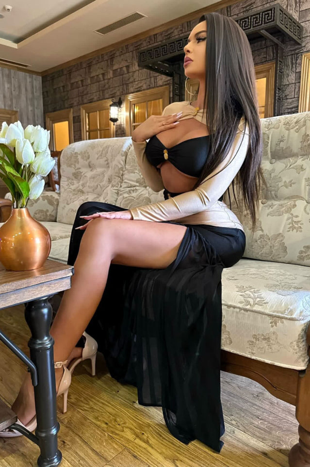 This dress exudes sultry appeal with its dramatic cut-outs, semi-sheer panels and floor-sweeping hem. Four crystal-embellished gold-tone metal pineapples emphasise the bold mood.