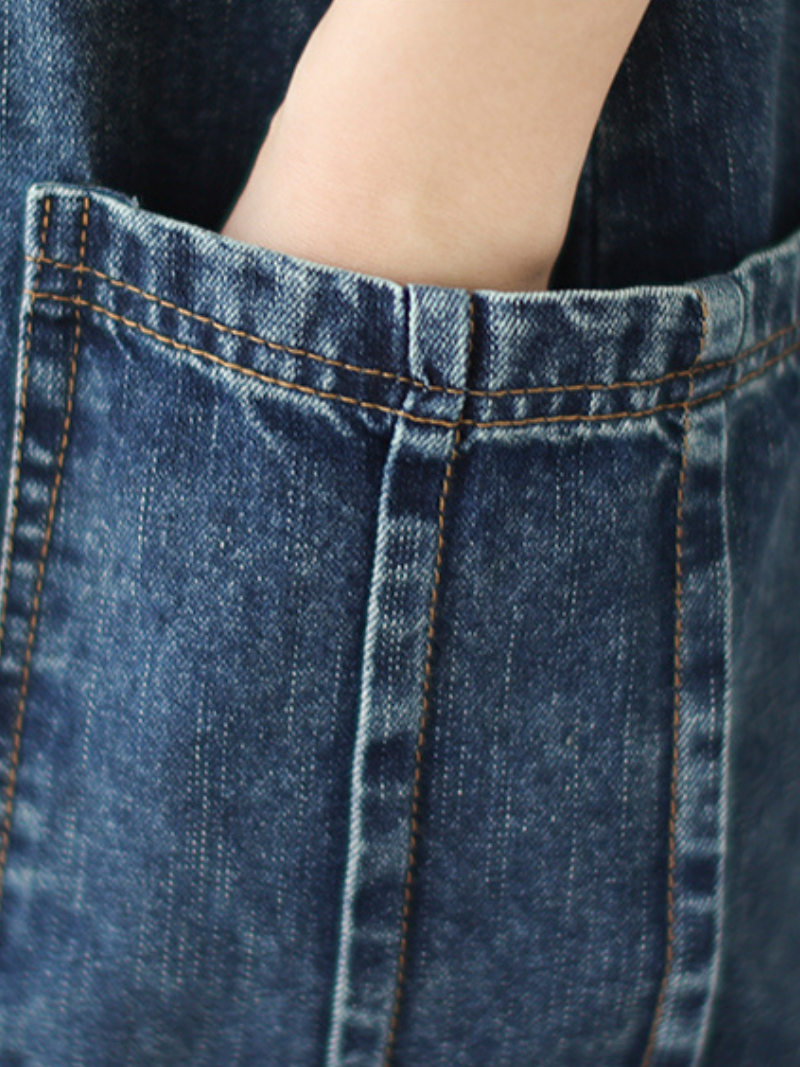 Pure Soul Denim Round Neck Loose Salopette Dress