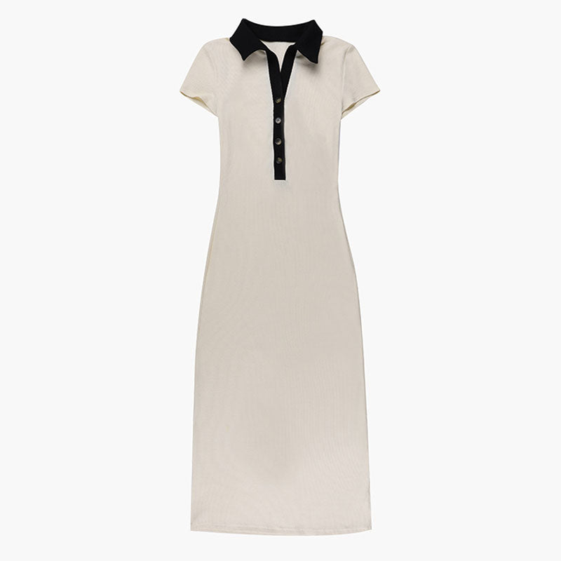 Whether you're looking for cosy or casual. this knit piece will go hand-in-hand with your weekend plans. Crafted with stretchy textured knit and polyester in solid color. embellished with a contrast color shirt collar and a button-down front. featuring a pull-on styling with short sleeves. a tight fit silhouette ended up with an ankle length. Find more trendy women's knitted dresses or unique clothing in our boutique. and simply style it with a pair of sneakers for a laid-back yet chic look.