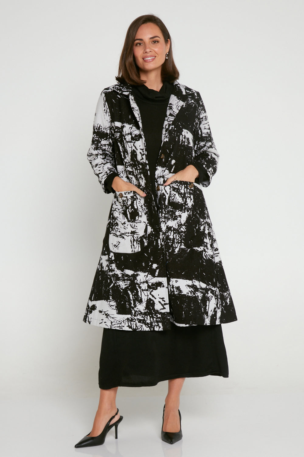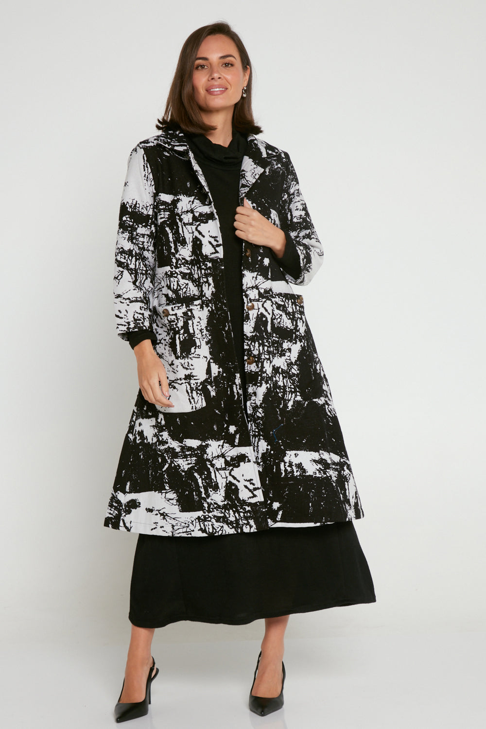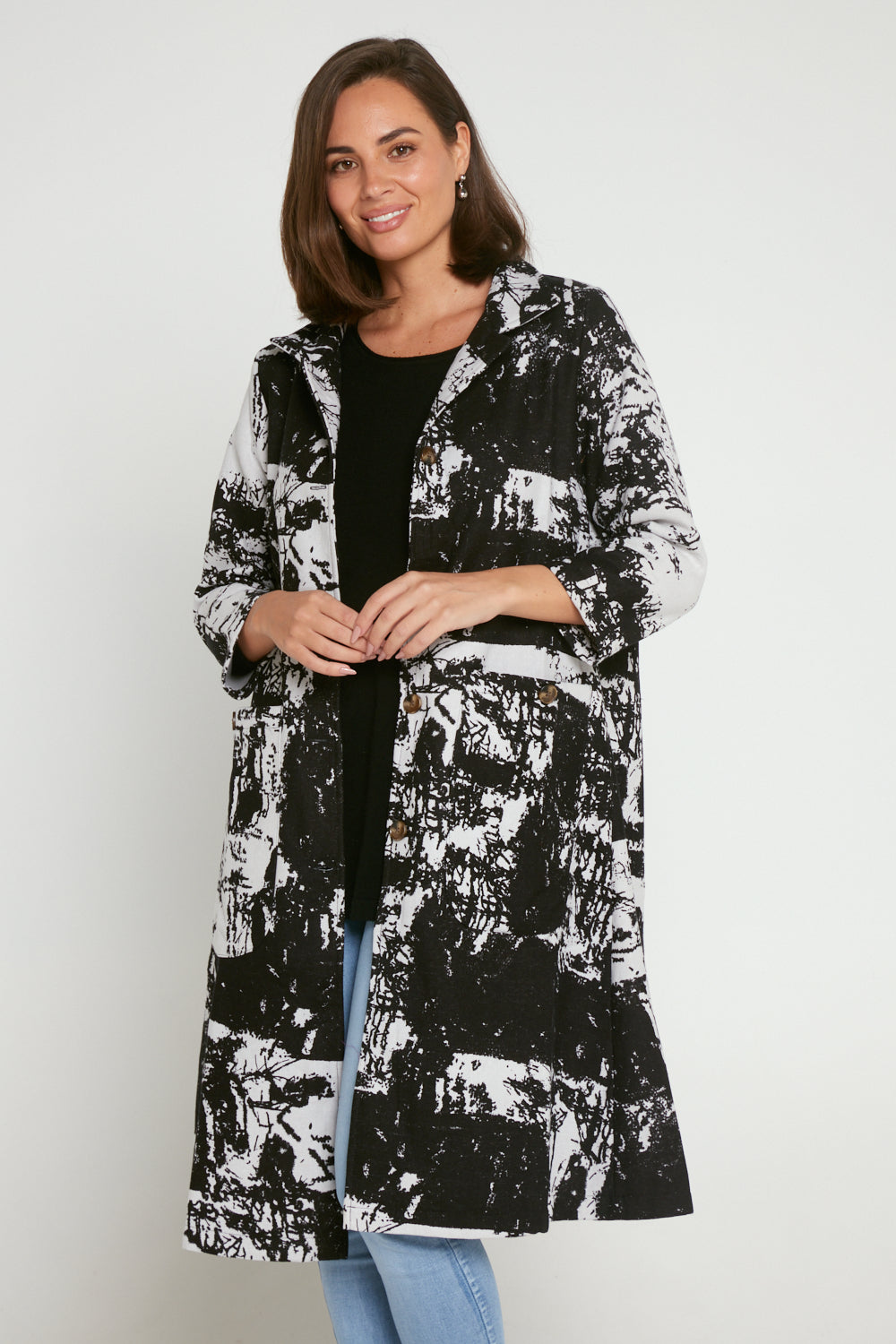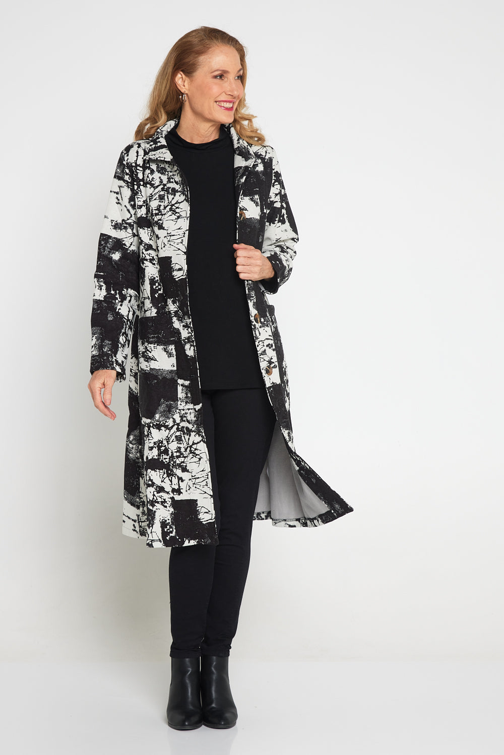 Carlton L/S Fleece Lined Coat - Black/White Patch
