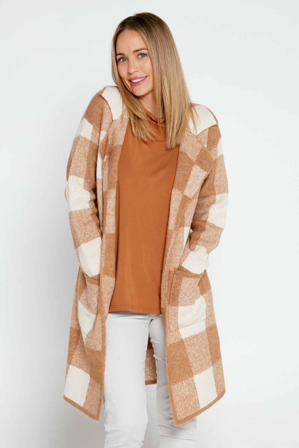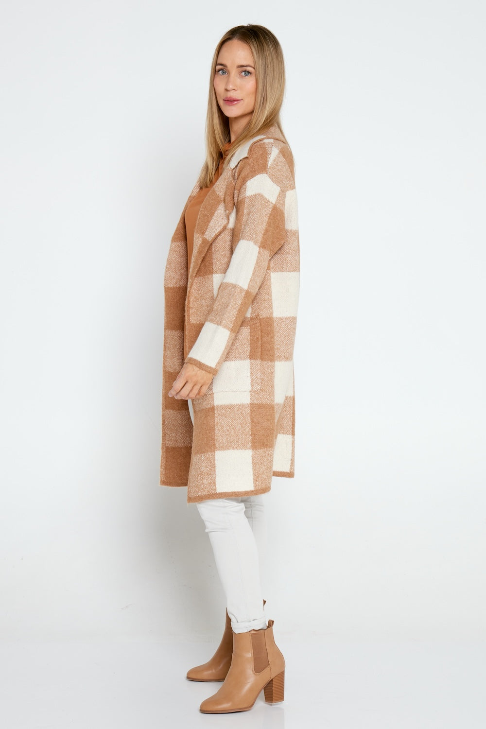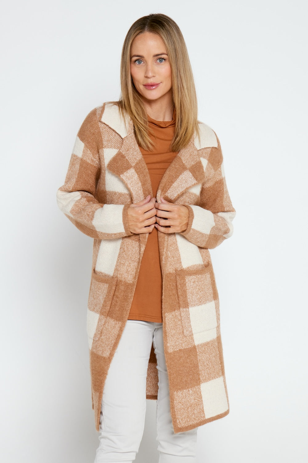 Jessa Wool Blend Knit Jacket - Brown/Cream Check