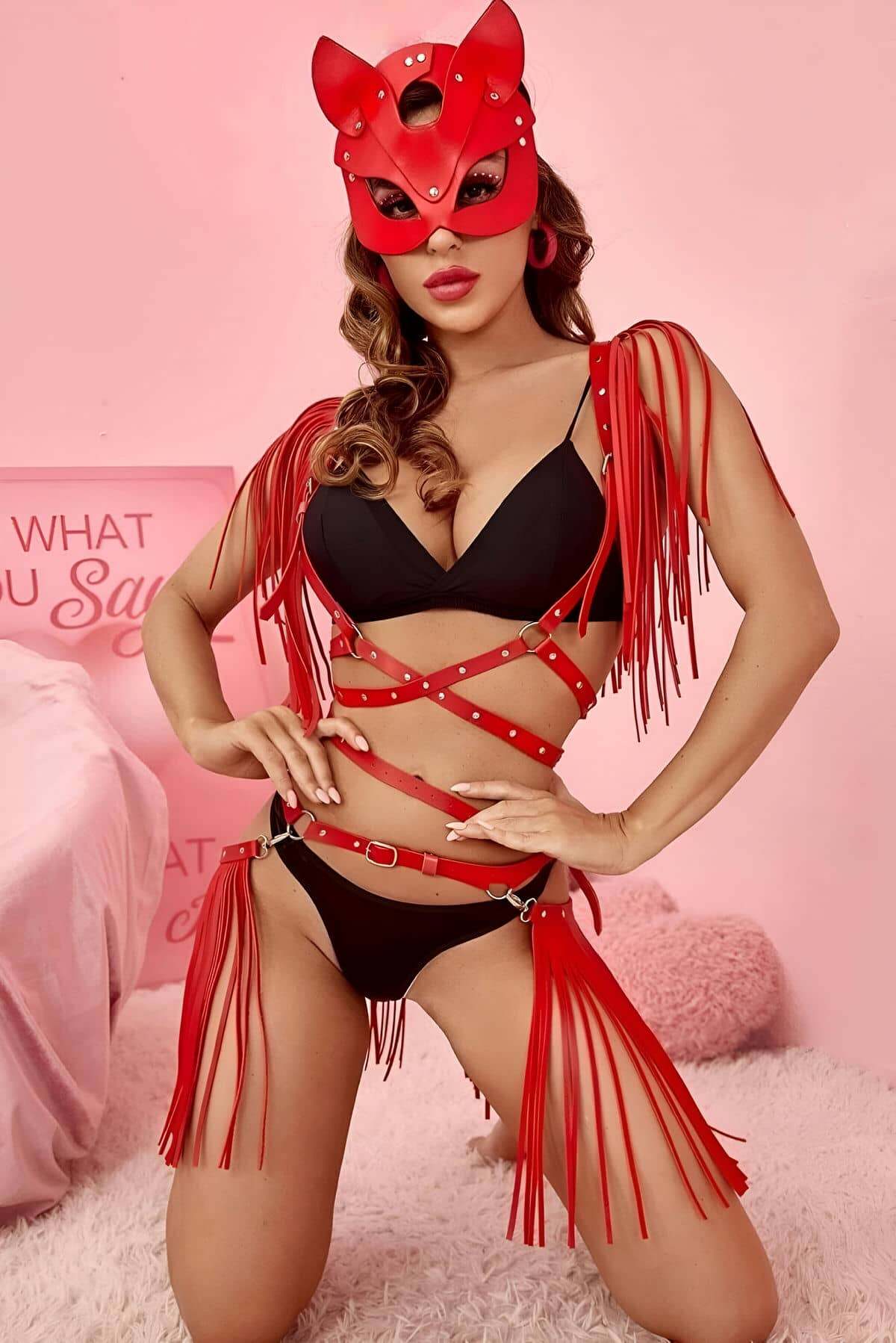Masked and Tasseled Leather Skirt - Jacket Set