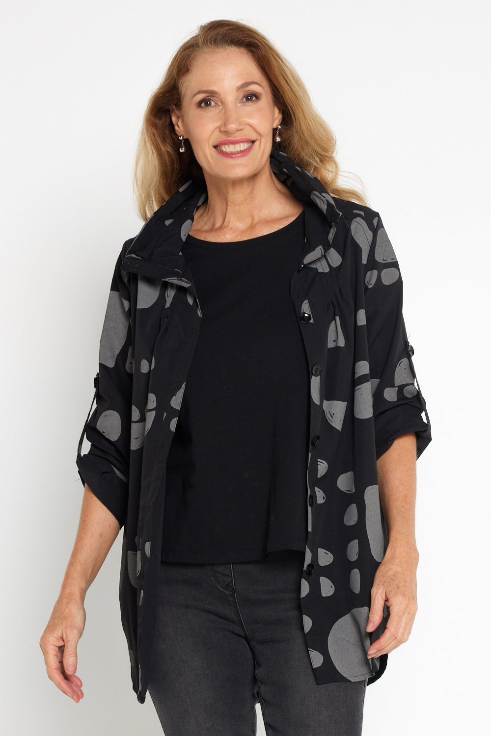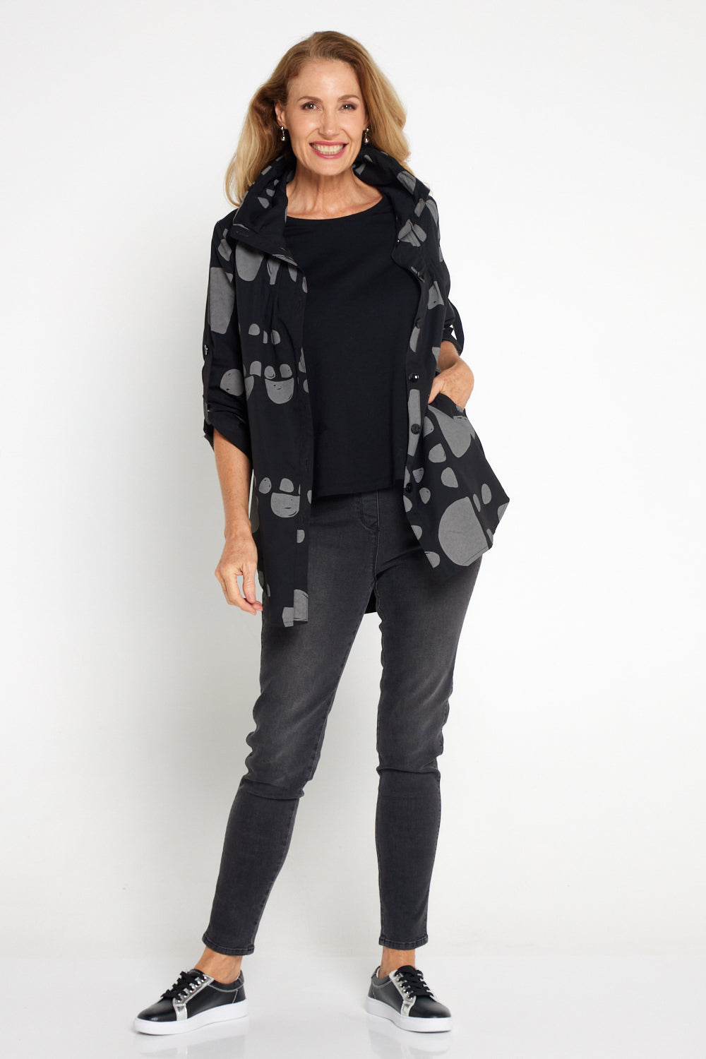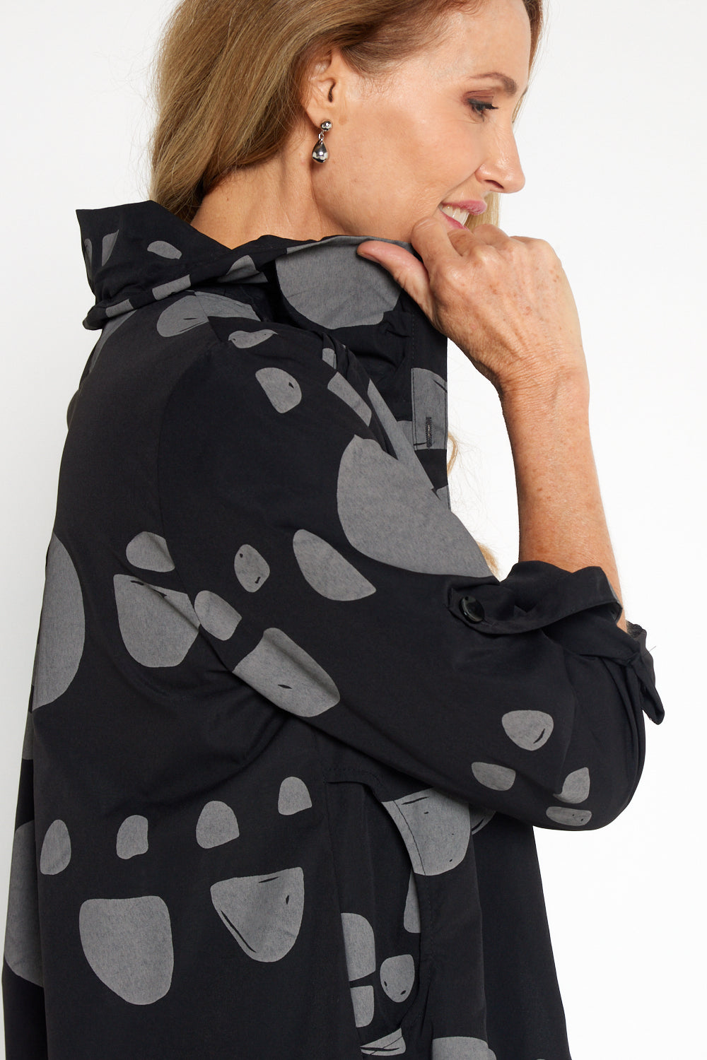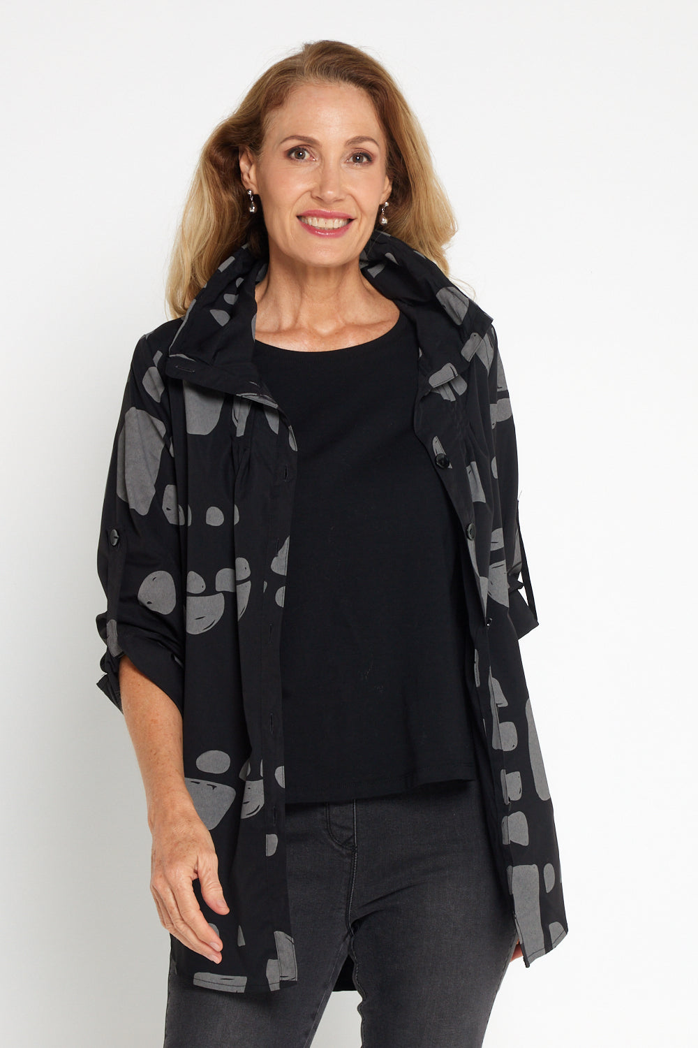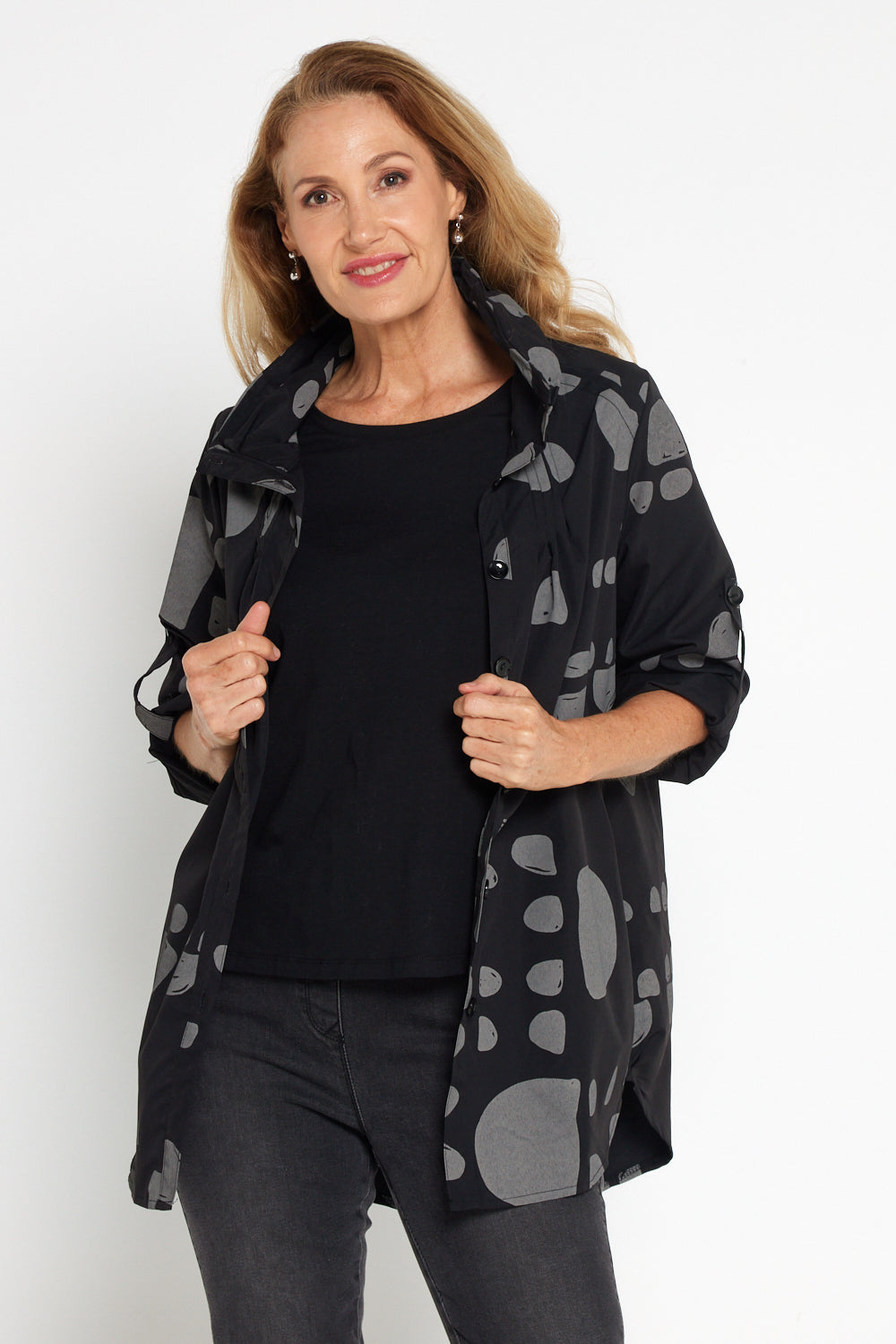 The Roma Jacket is a sleek, lightweight jacket that looks more polished and put together than your average windbreaker. Cut from a smooth, lightweight, fast drying weave, this will be a great option to have on hand to throw on for some extra protection from a cool breeze or light drizzle of rain. The roomy fit makes it easy to layer over your outfit, while the grey spot style pattern separates it from your basic jacket.