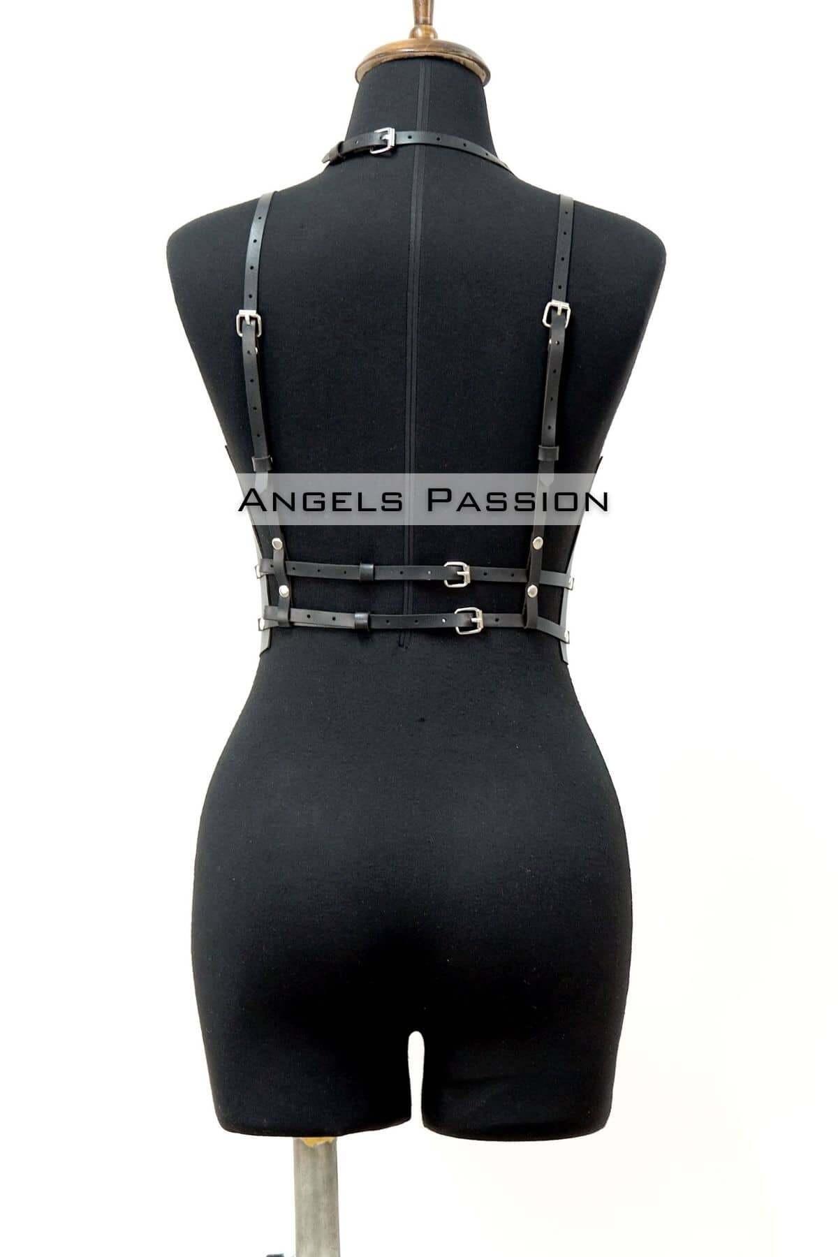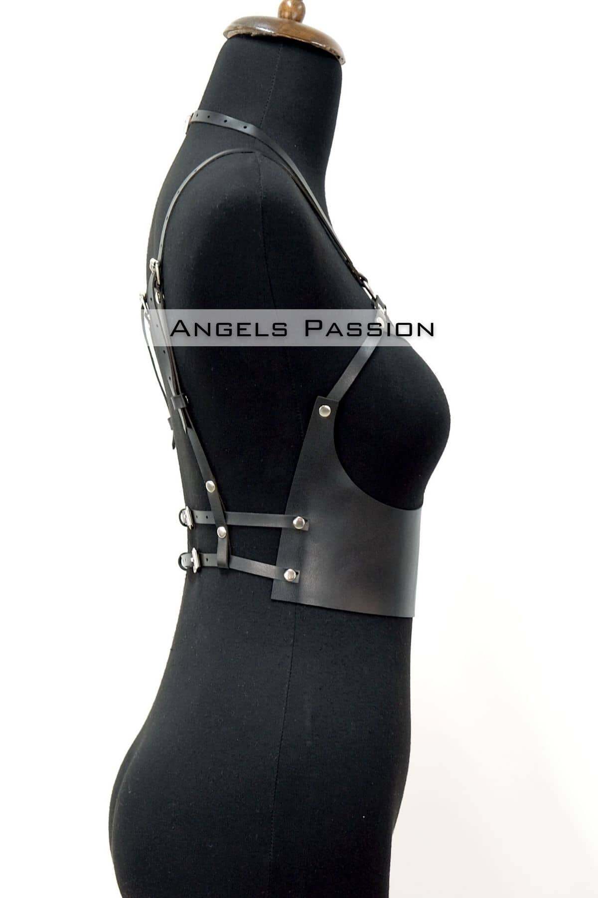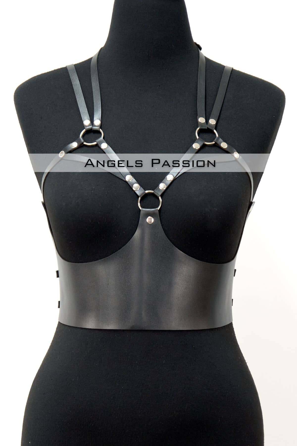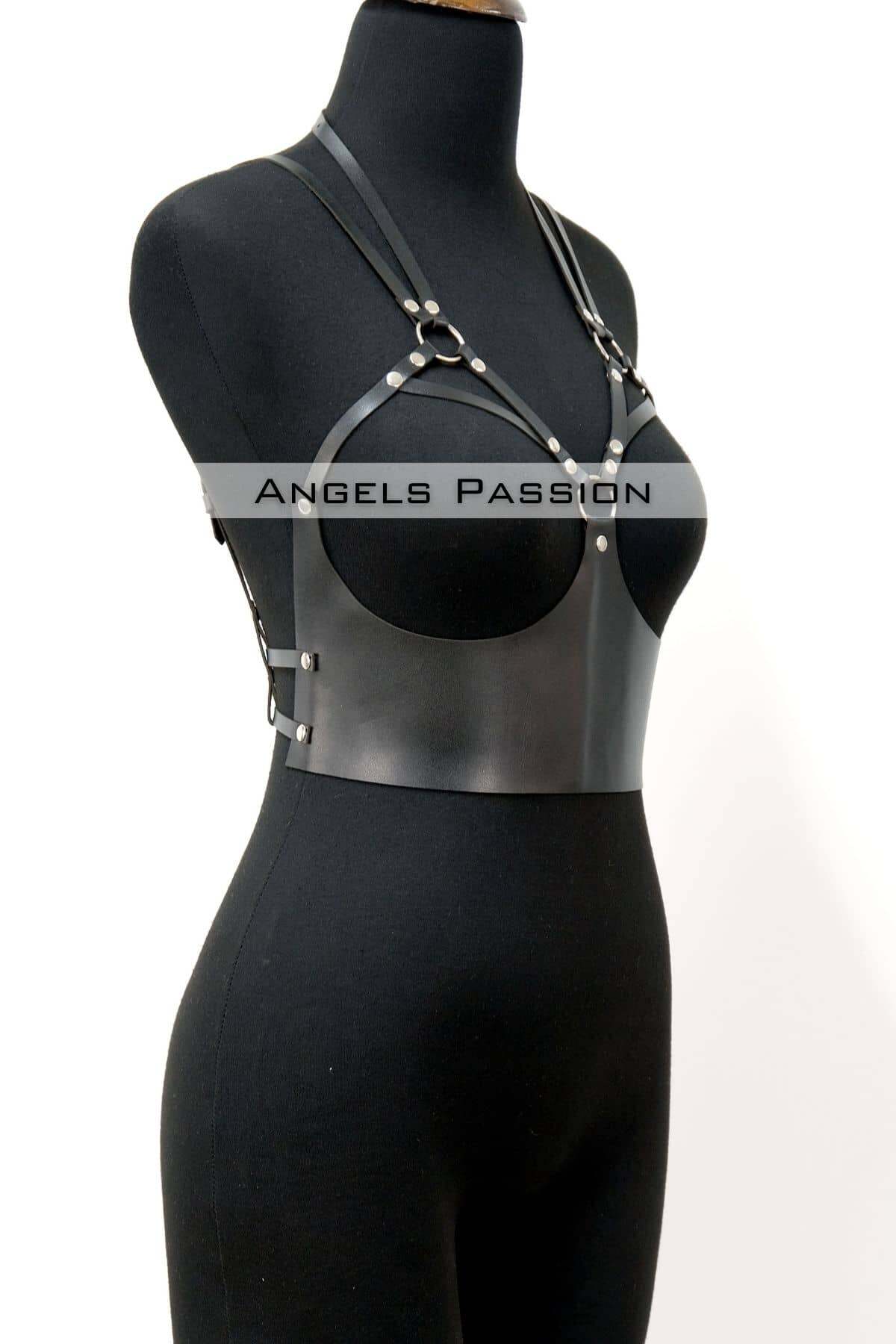 Leather Harness Bustier with Chest Detail, Stylish Leather Corset