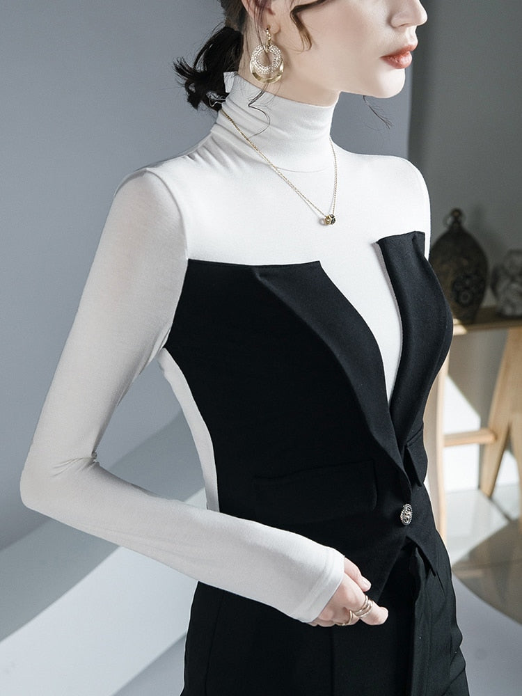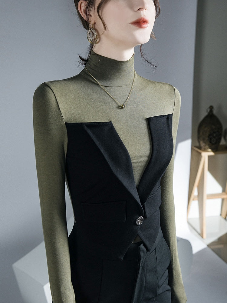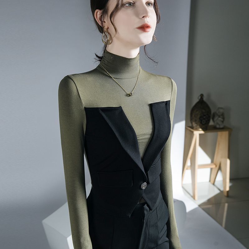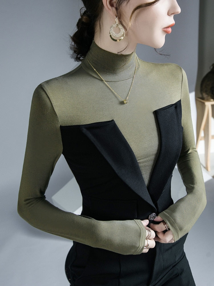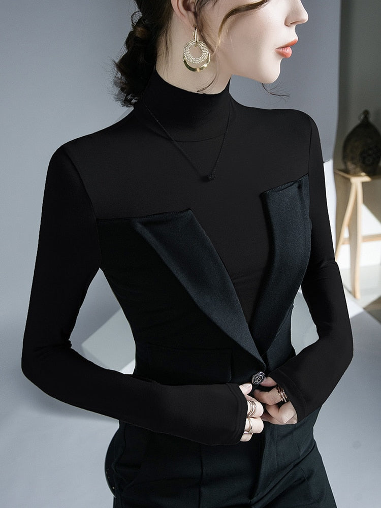 You'll love how flattering and stylish this women's blouse looks. A perfect choice for any occasion. The stylish solid pattern helps add a fun and unique style to any casual wardrobe. A fun and stylish turtleneck collar helps keep him warm and cozy. The long sleeve features a button detail at the front.