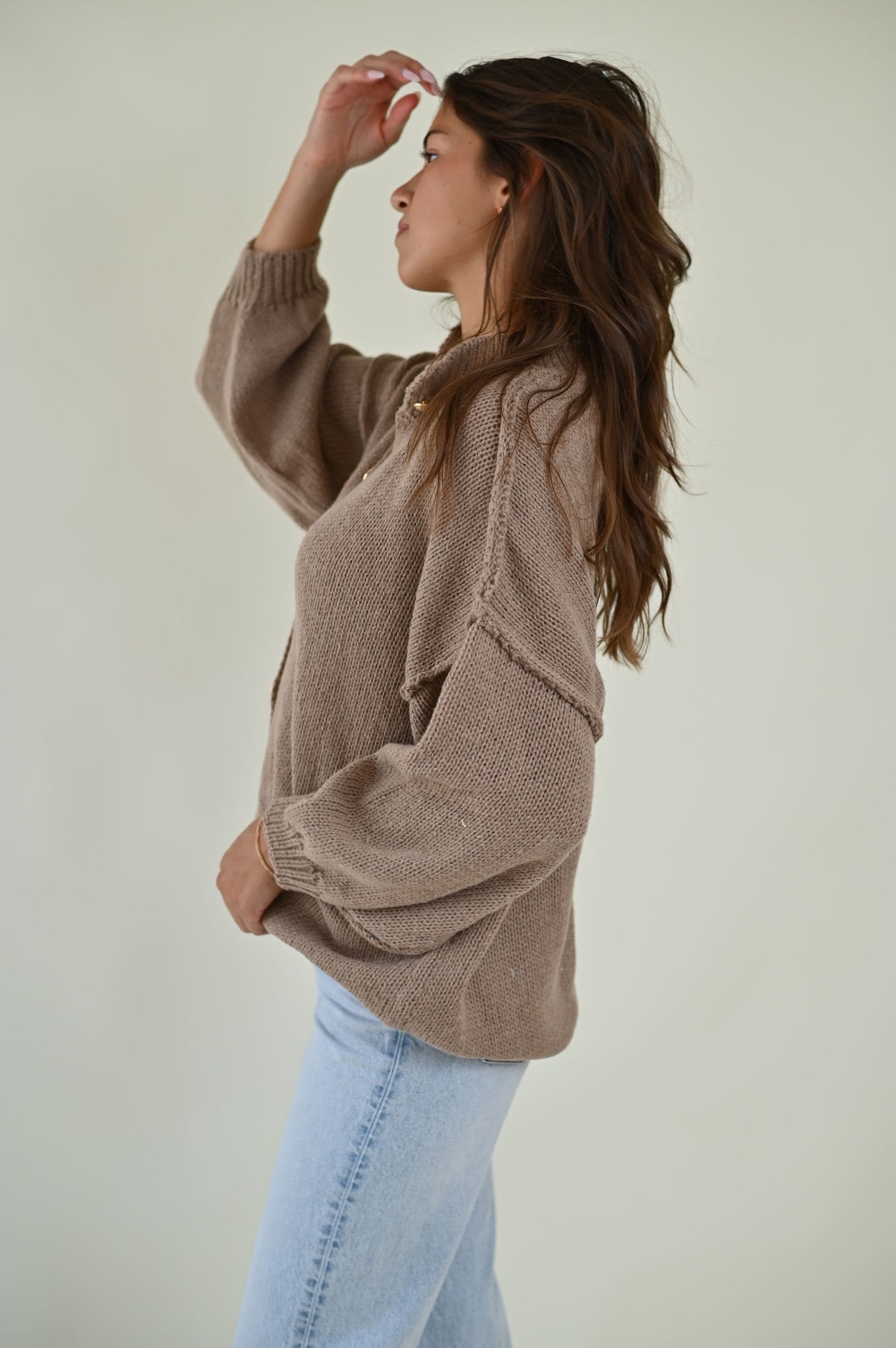 Introducing the Coffee Date Sweater - the perfect blend of style and comfort. This ladies cardigan features new metal buttons for a touch of sophistication. Stay cozy on those chilly coffee dates with this must-have sweater in your wardrobe. (So don't wait, grab one now!)
