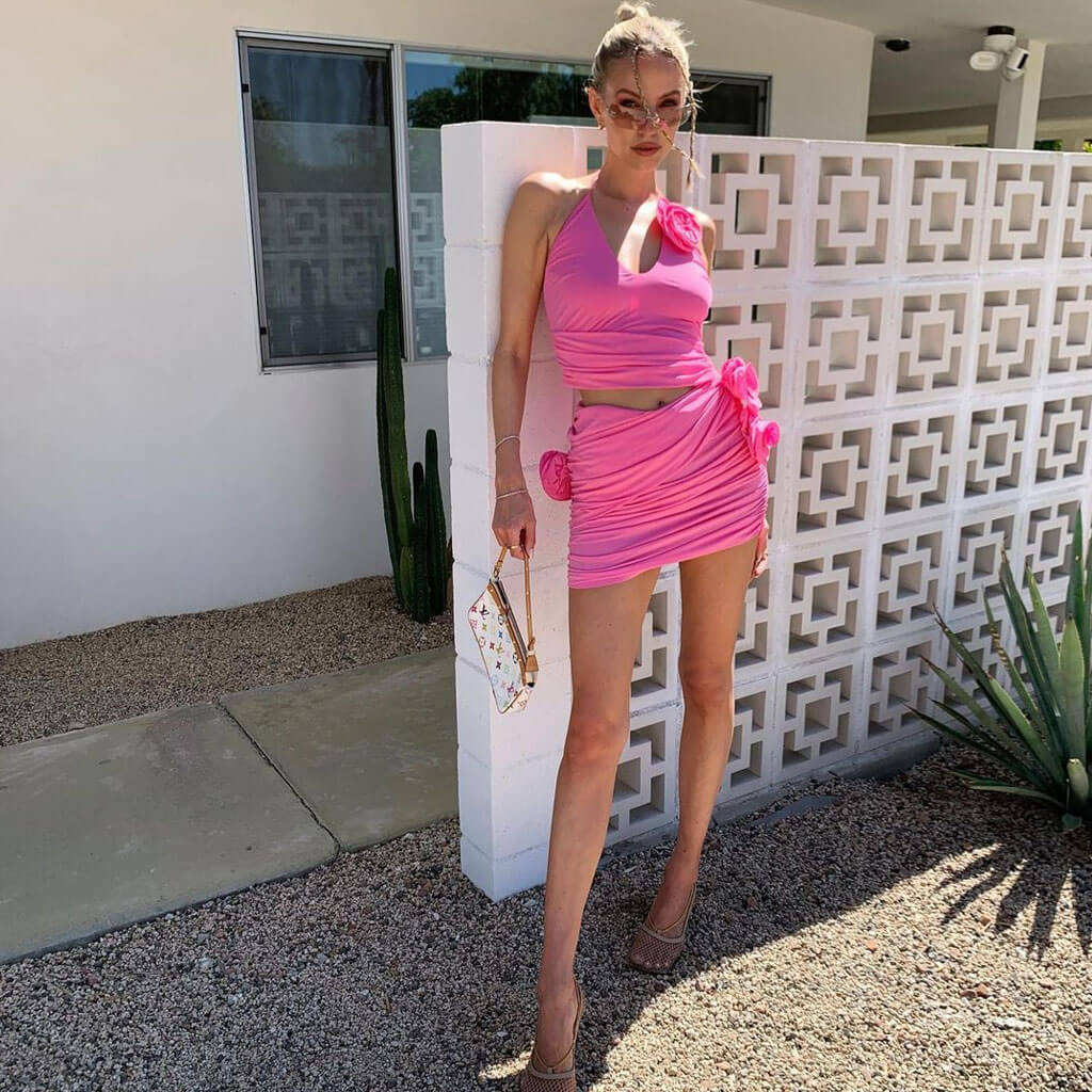 Sexy 3D Rosette Corsage Halter Neck Split CutOut Ruched Bodycon Mini Party Dress