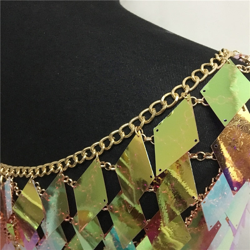 Give your look a special twist with this attractive chain jewelry piece. A bold diamond-shaped sequin is an eye-catching accessory that will give off a glamourous look that is sure to turn heads.