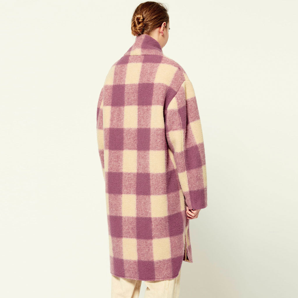 Trendy Long Sleeve Single Breasted Wool Blend Check Coat - Rose