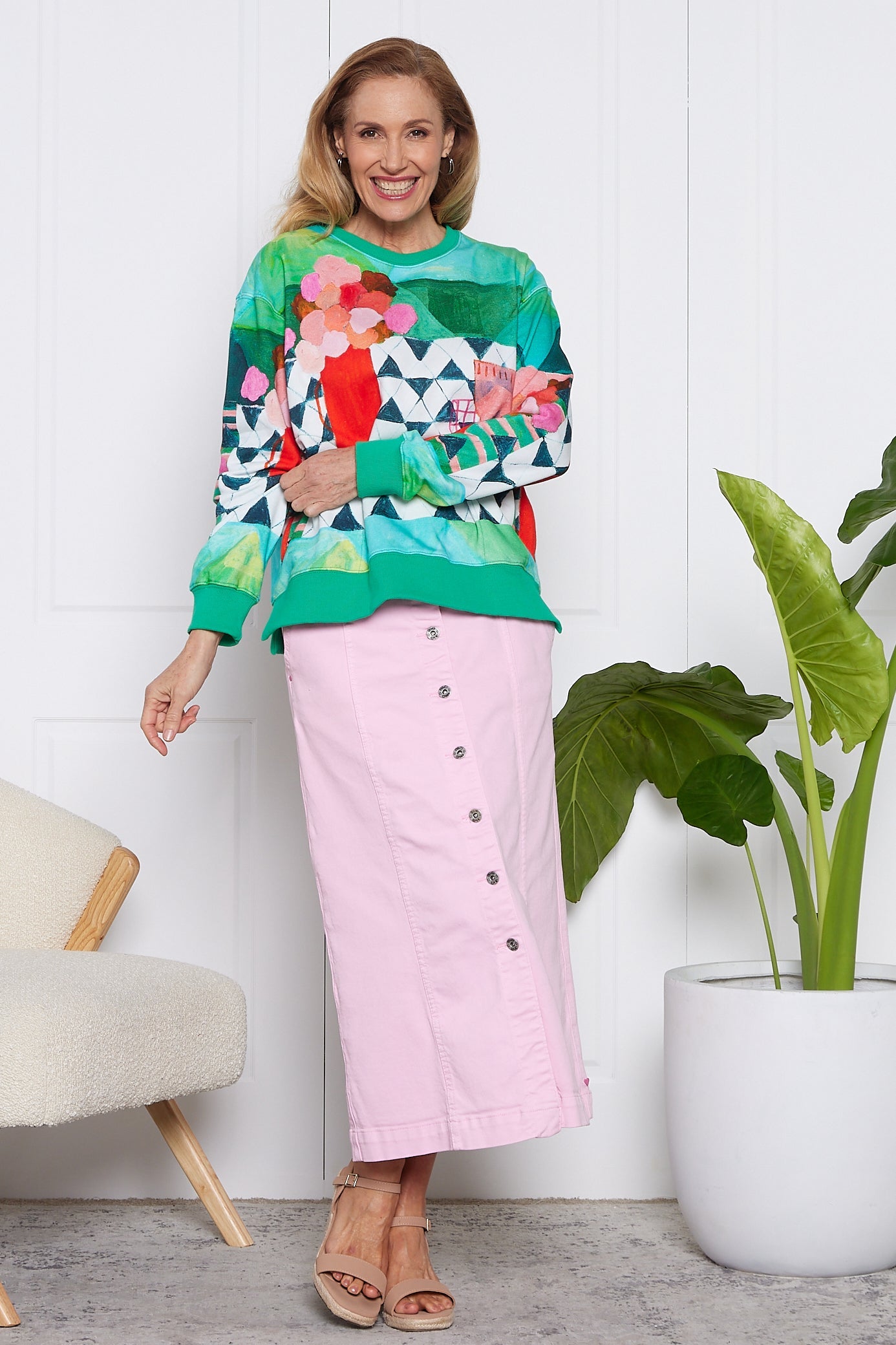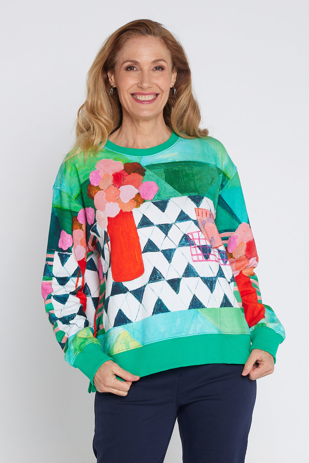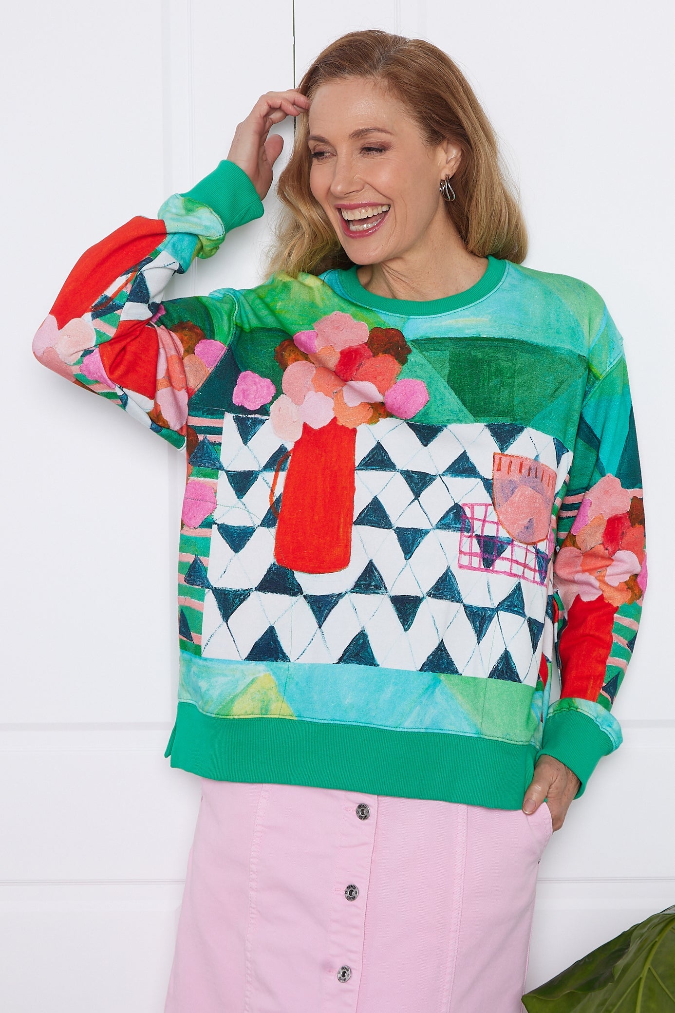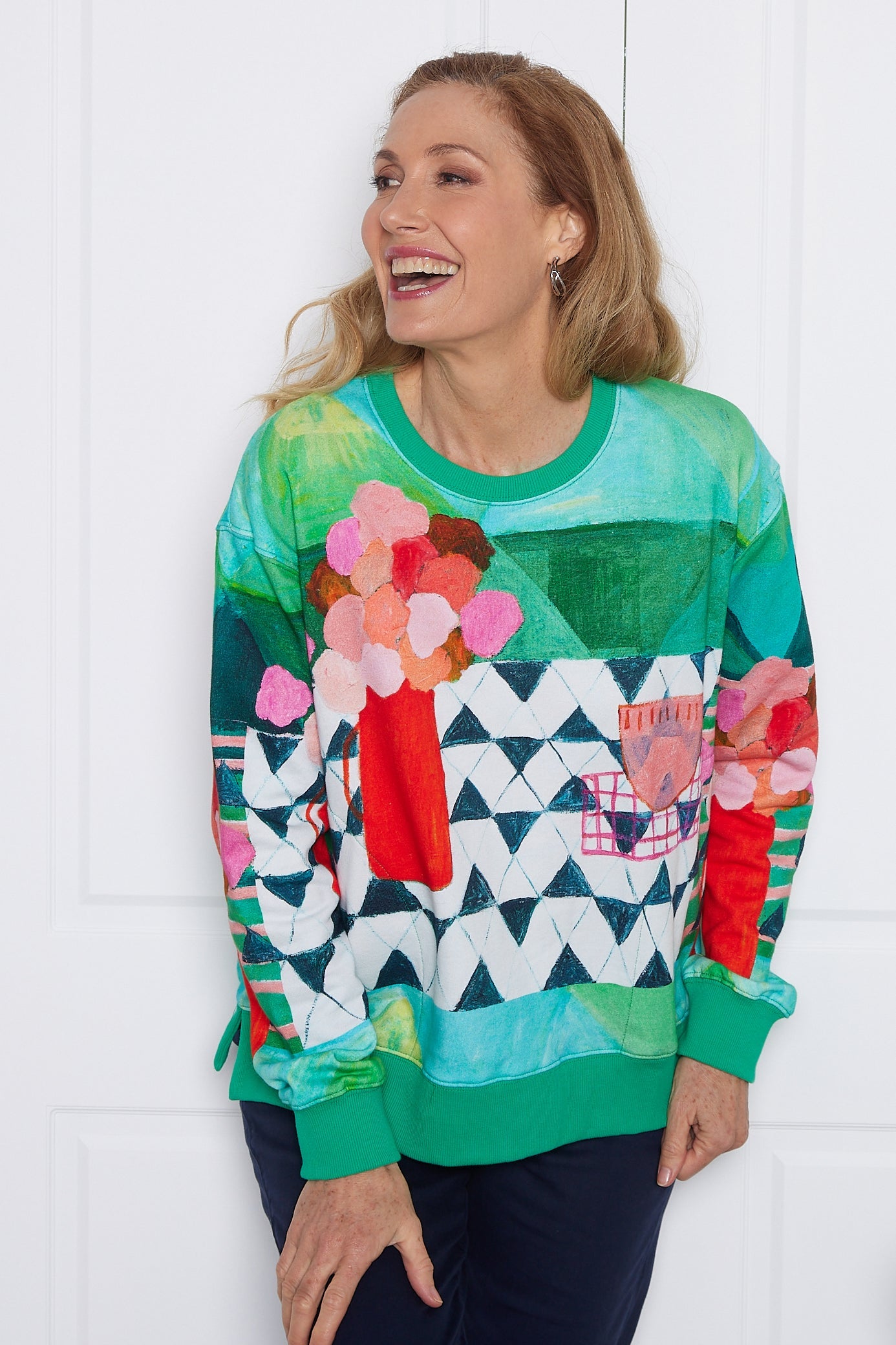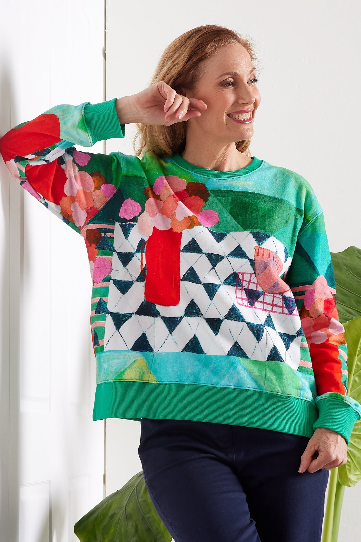 "From our gorgeous artist collaboration - Beauty in Everyday - Elm Lifestyle & Janey Forbes have teamed up to create this stunning graphic depiction of Janey's Private Universe painting on an effortless and colourful Elm crew.