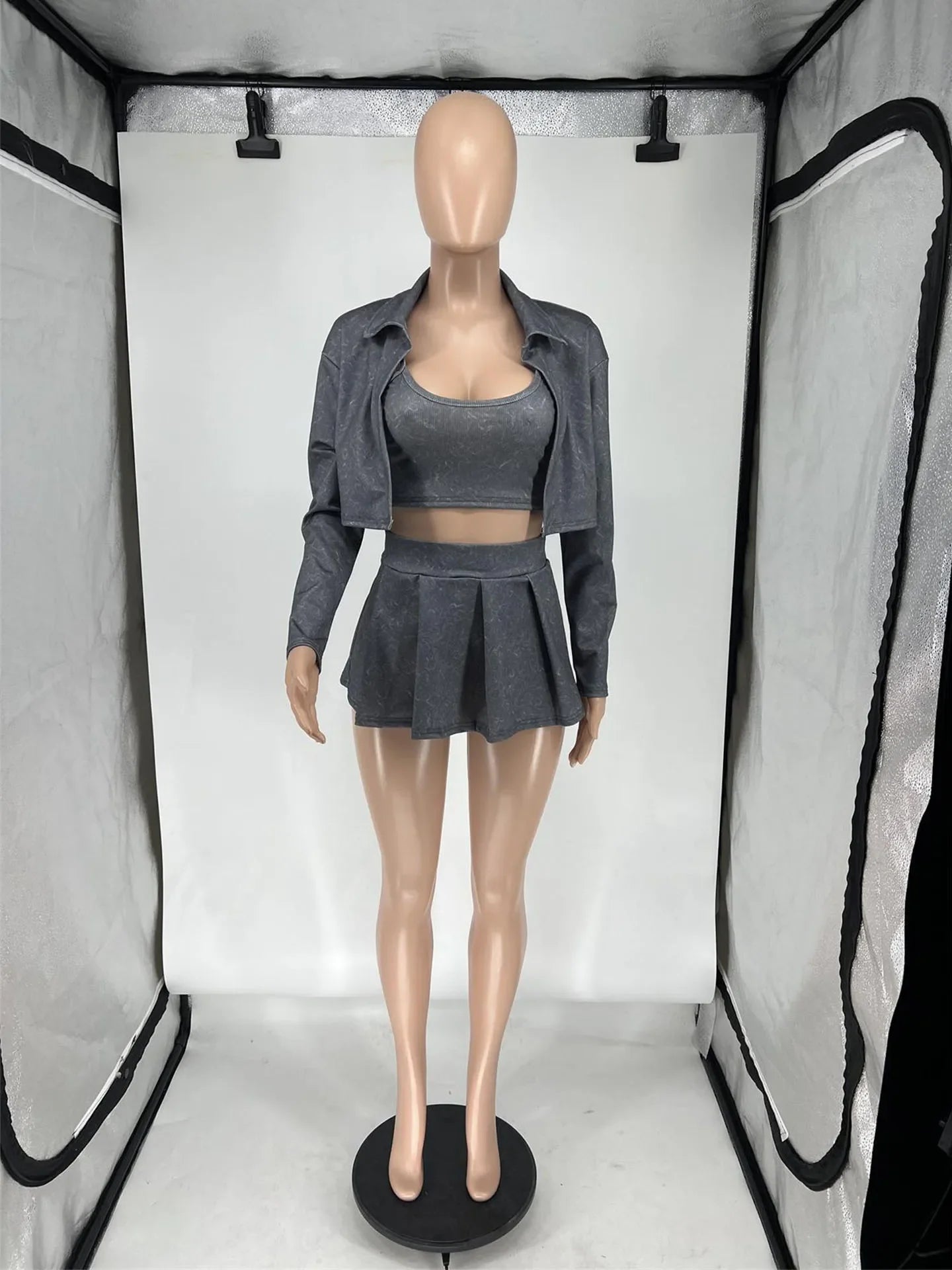 Indulge in your style with our skirt set! Made with smooth polyester and a convenient zipper, this solid set offers the perfect combination of comfort and style. Transform your dreams into reality with this must-have addition to your wardrobe.