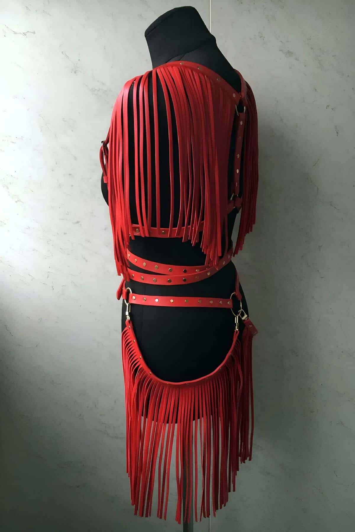 Stylish Red Leather Skirt - Jacket Set with Tassel Detail, Leather Skirt and Jacket Set
