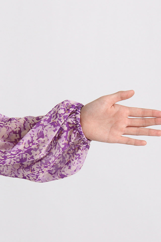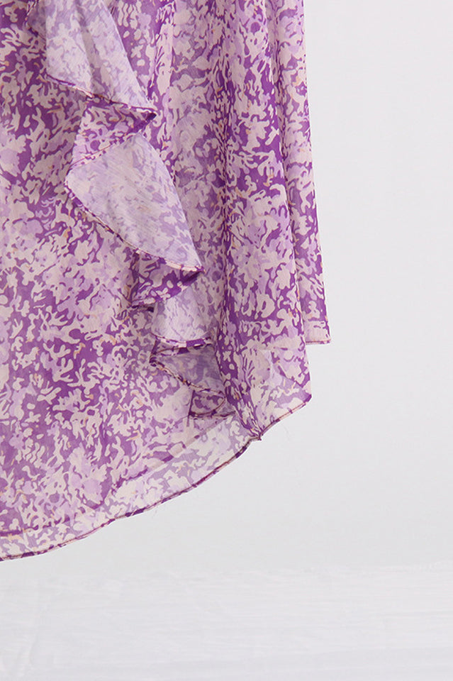 Long sleeve frill maxi dress in a light weight semi-sheer chiffon in the Aurier print.