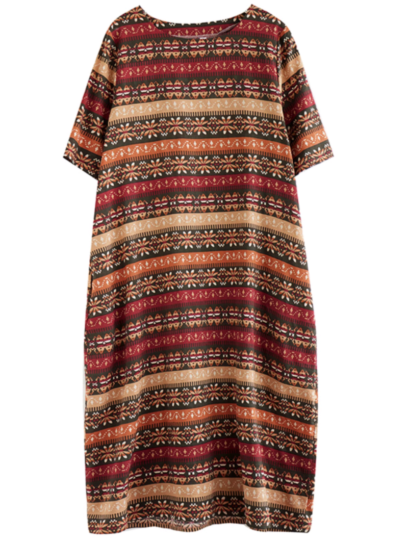 Women's Color Striped Printed Midi Dress. crafted with soft and breathable slub cotton material. This delightful dress features short sleeves and a comfortable round neck collar. The dress is available in two charming colors: coffee and blue. allowing you to choose your preferred style. With three size options (S. M. L). you can find the perfect fit. The dress lengths range from 111cm to 113cm. while the shoulder widths range from 40cm to 42cm. The bust measurements vary from 102cm to 110cm. Embrace effortless style and comfort with this versatile striped printed midi dress. suitable for various occasions.