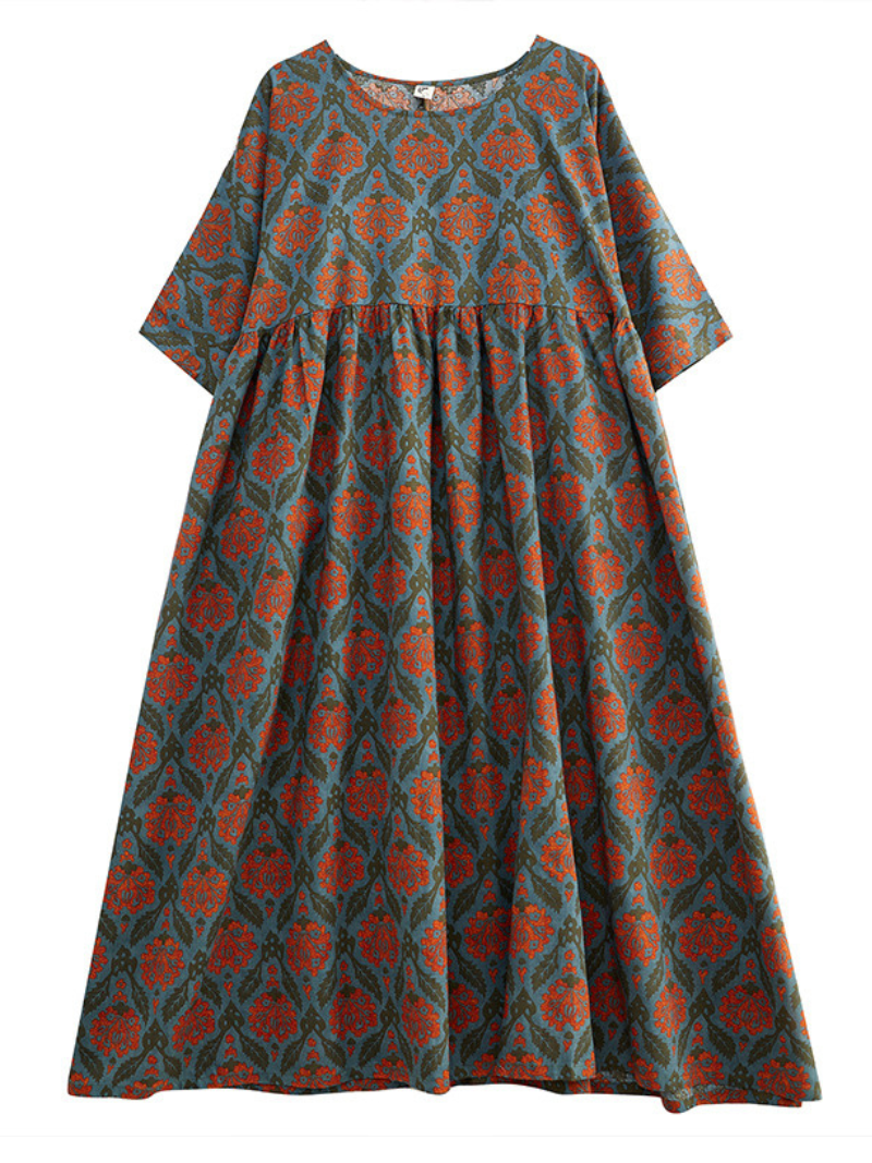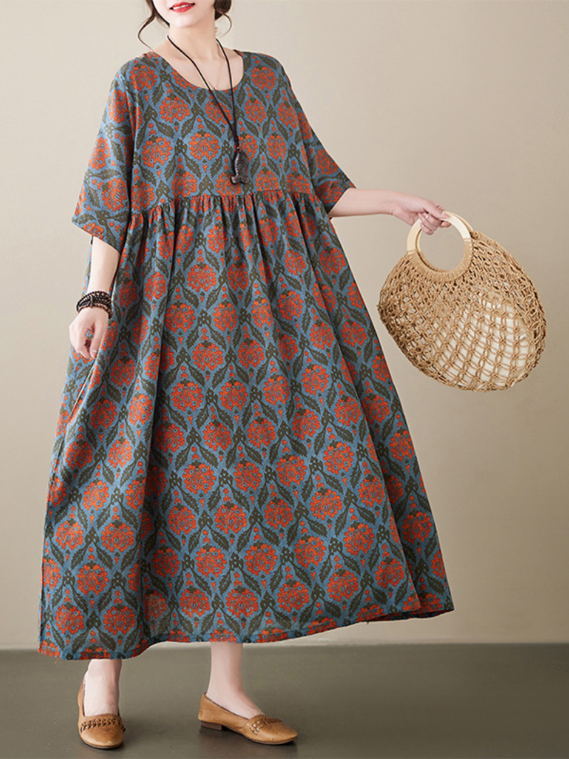 Dress the most beautiful you as you walk down the street or party. You'll be sure to get compliments and attention wherever you go in this dress that features a round neck. long skirt. and floral flora print.The fabric is light and comfortable while the colors are eye-catching and vibrant. A great party dress for those special occasions where you want to look your best!