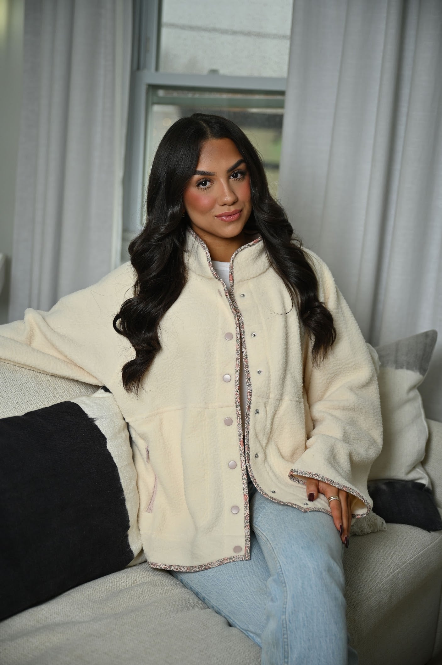 Introducing our Goals Sherpa Jacket - the ultimate fall cozy essential with a snap mock neck and plush sherpa fleece. Perfect for snuggling up on chilly days (or for hiking up that mountain). Get ready to conquer your goals in style!