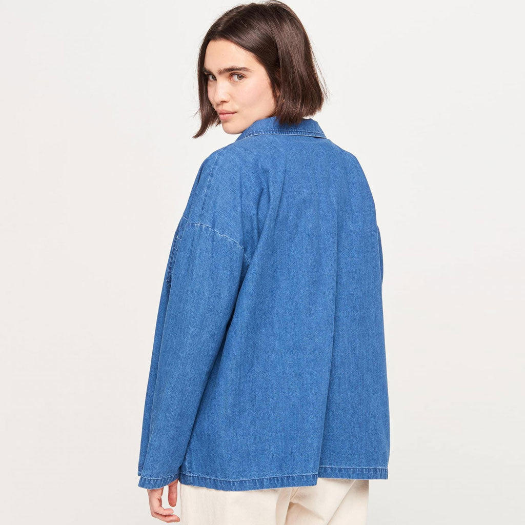Surprised by toggle buttons fastening at front. this luxury denim top creates a vintage inspiration and embraces the upcoming spring and fall. Crafted with high quality cotton-blend denim fabric. this versatile shirt jacket also features a lapel collar neckline. long sleeves with drop shoulders. patch pockets on front and seams detailing around. Slip it on over a basic top and denims for a trendy street look. Our designer clothes collection also contains many vintage shirt jackets for women.