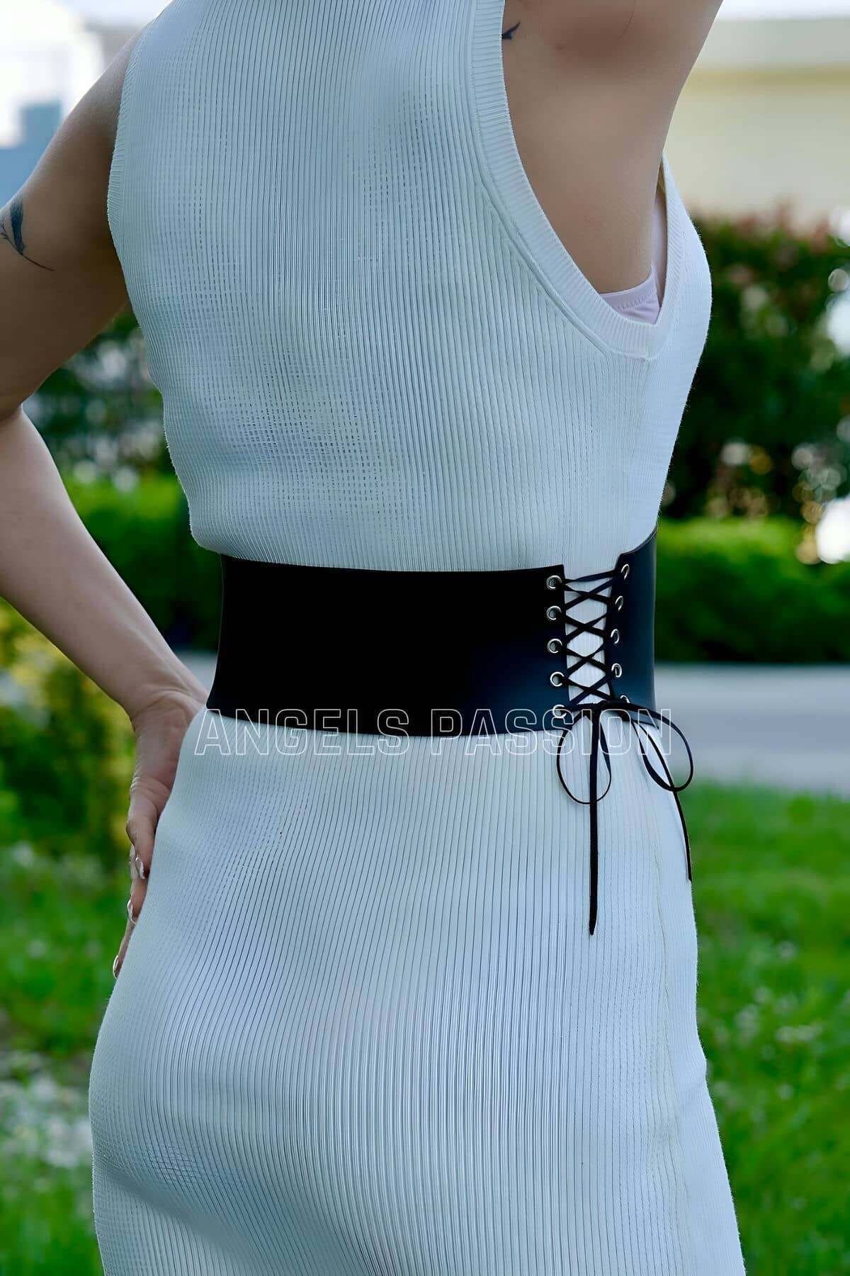 Stylish Harness Belt with Rope Detail, Leather Corset Belt