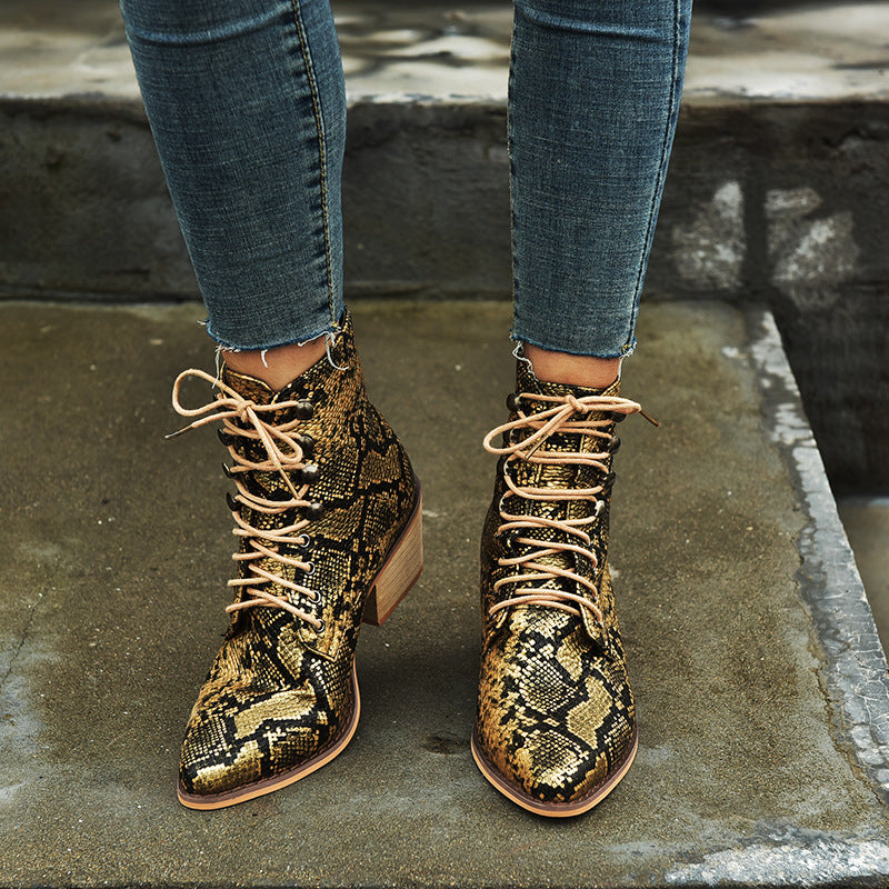 Animal Print PU Leather Cross Tied Chelsea Boots