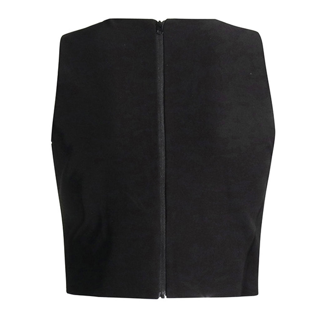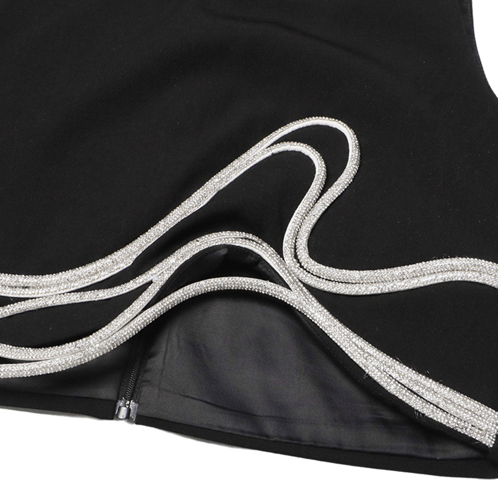 Asymmetric Cut Out Crystal Trim Sleeveless Round Neck Crop Tank Top