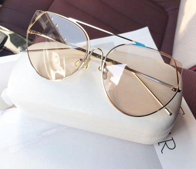 Alloy Frame Polycarbonate UV400 Lens Cat Eye Sunglasses