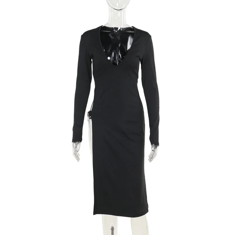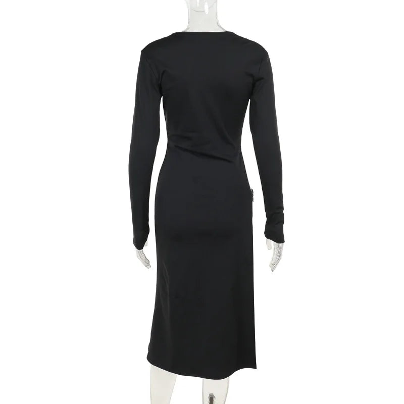 Experience effortless elegance and comfort in our midi dress. Made of polyester and spandex, this solid dress perfectly hugs your body in a flattering, bodycon silhouette. Elevate your style and confidence with this versatile midi dress!