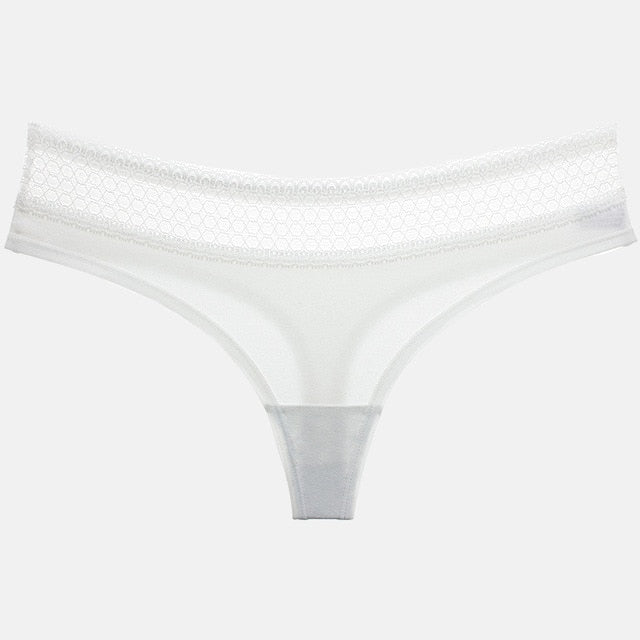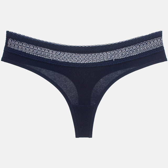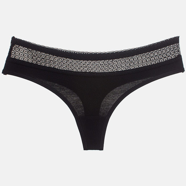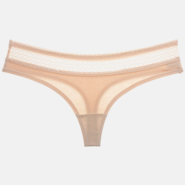 Low Thong Panties with Solid Color, Hollow Out Decoration, and Cotton Polyester Material