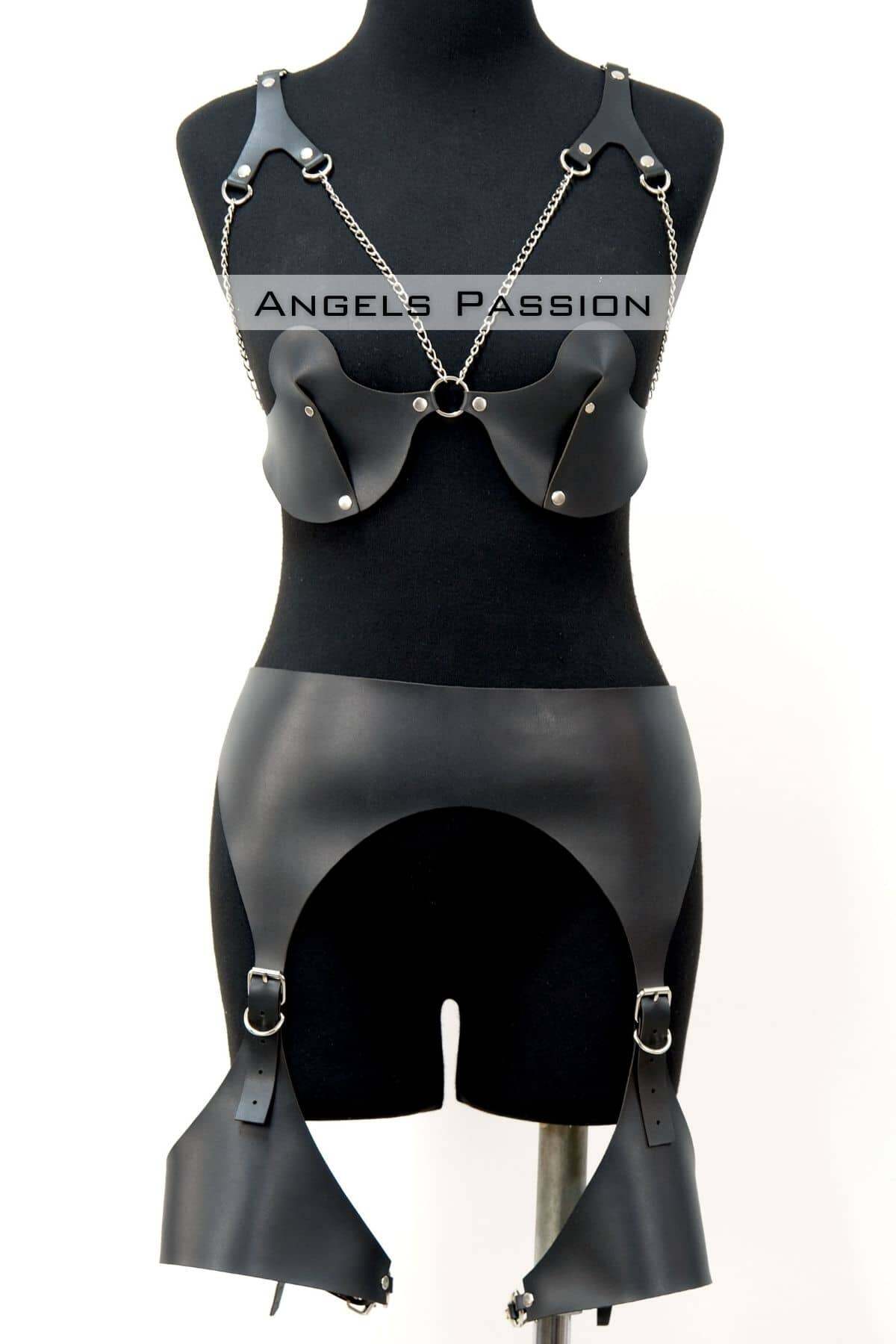 Erotic Leather Garter Harness Set, Women's Fantasy Underwear
