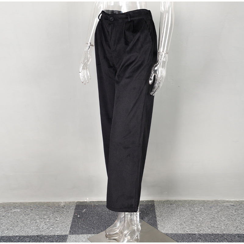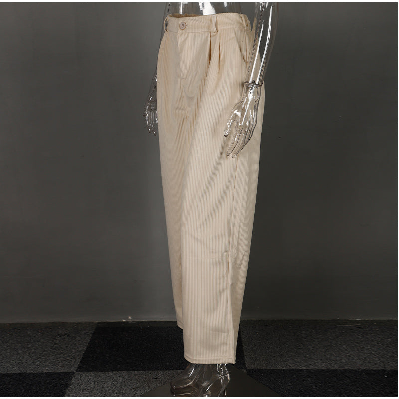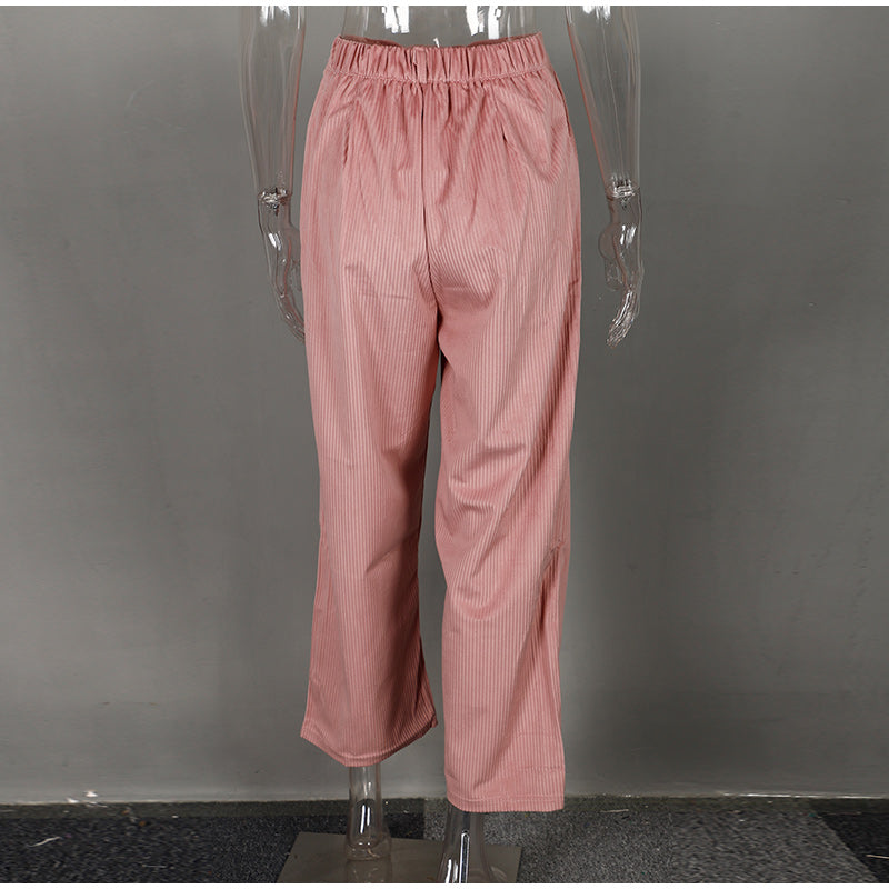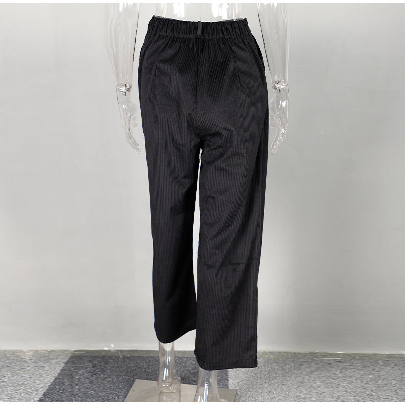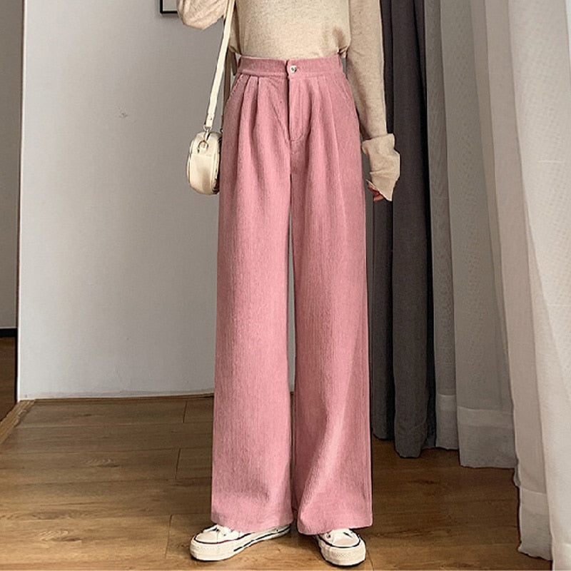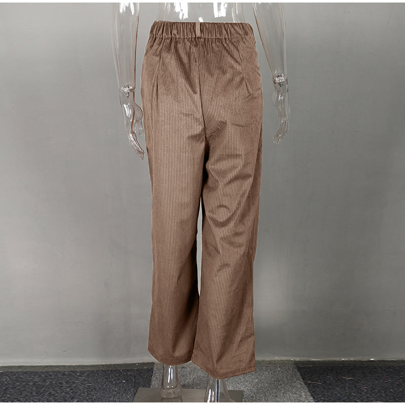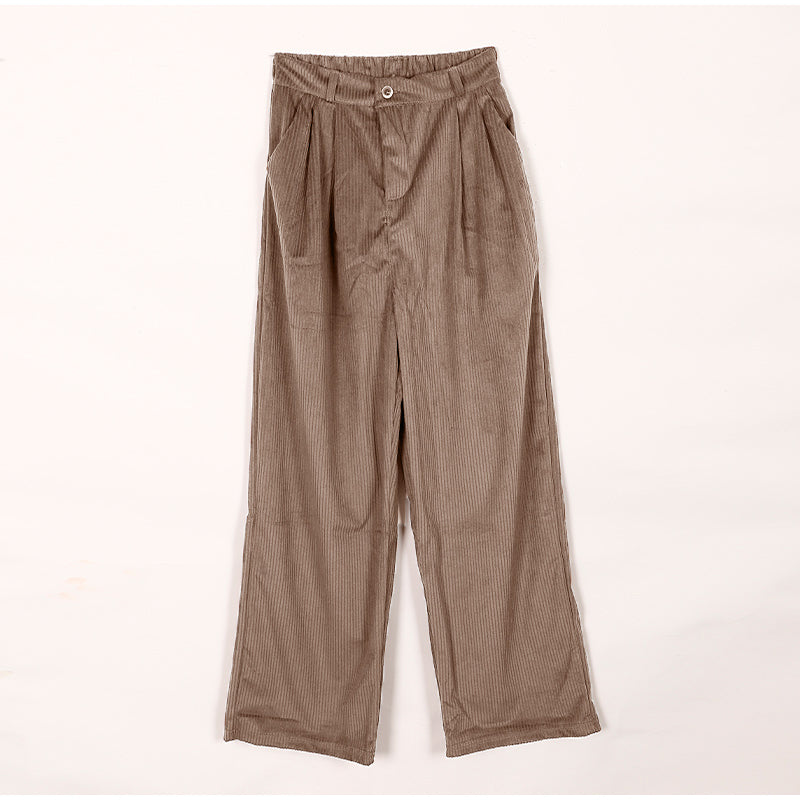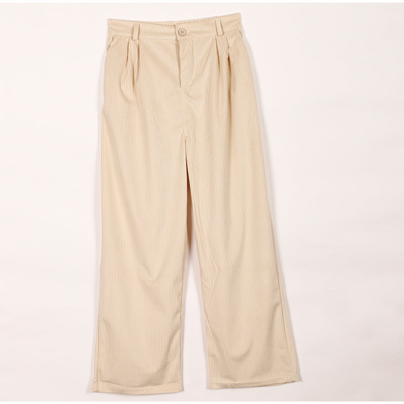 In a relaxed, loose fit, these high-waisted women's pants are perfect for any season. The polyester fabric is soft and comfortable and the solid color ensures that these pants can be worn with any top or sweater. They are fitted at the waist with a button fly.