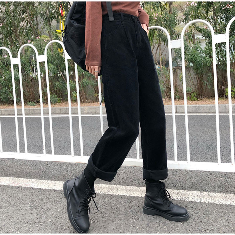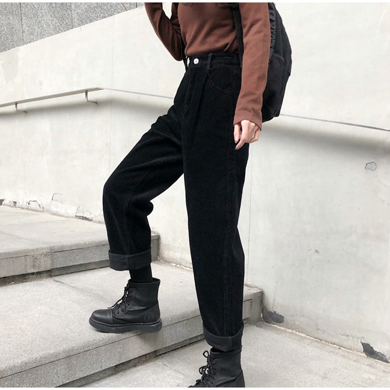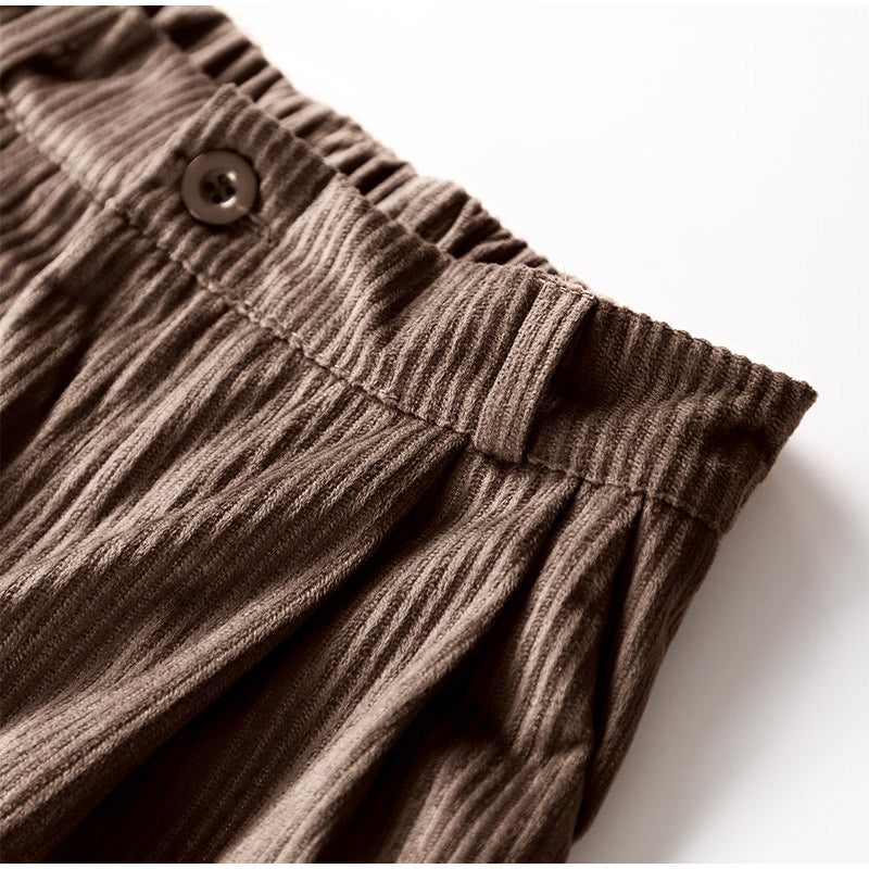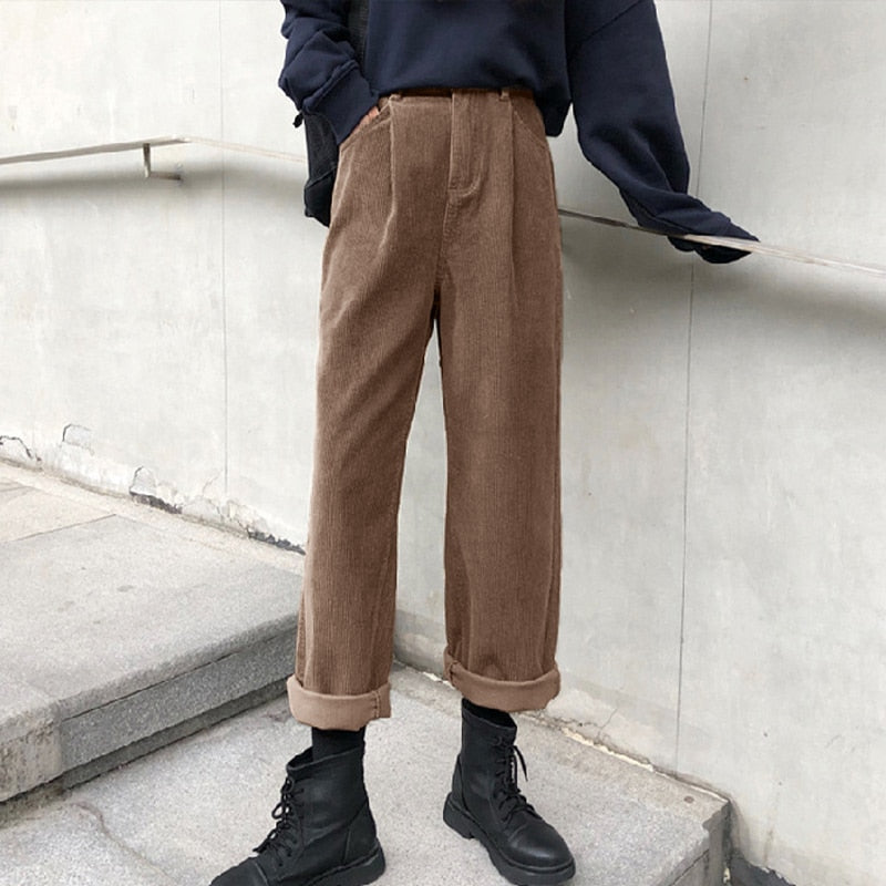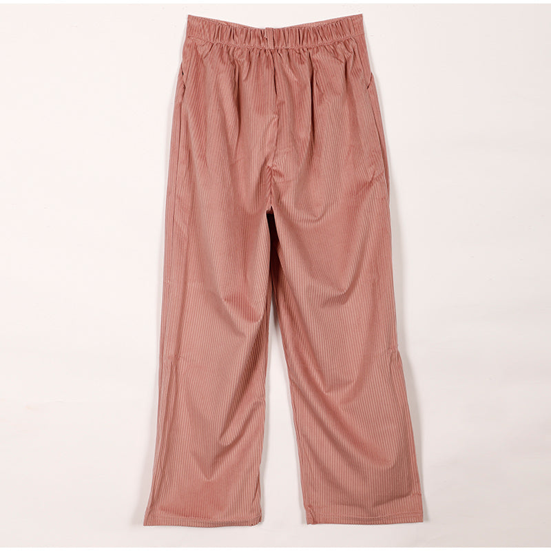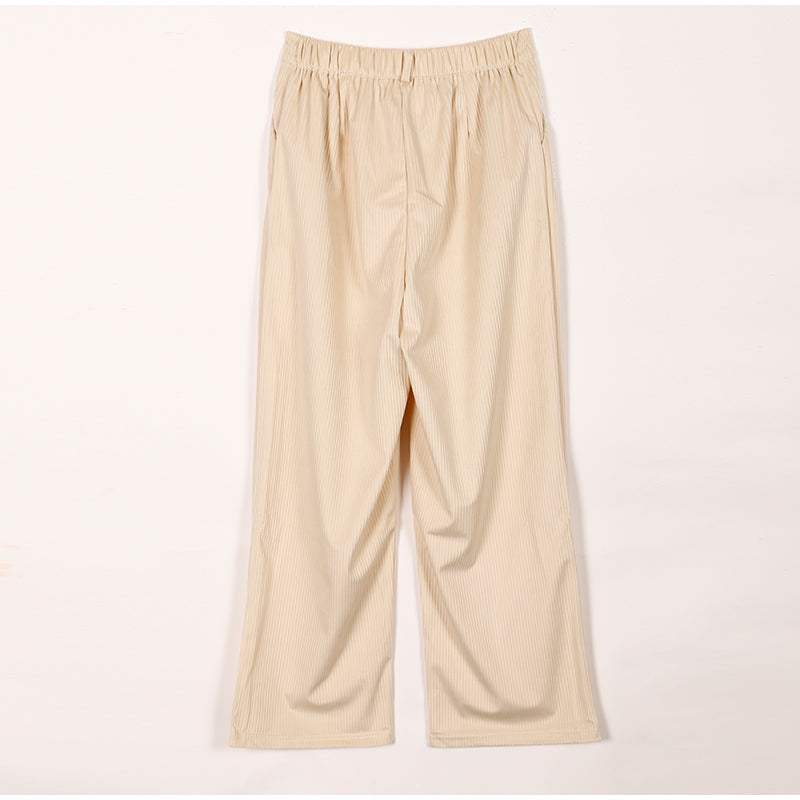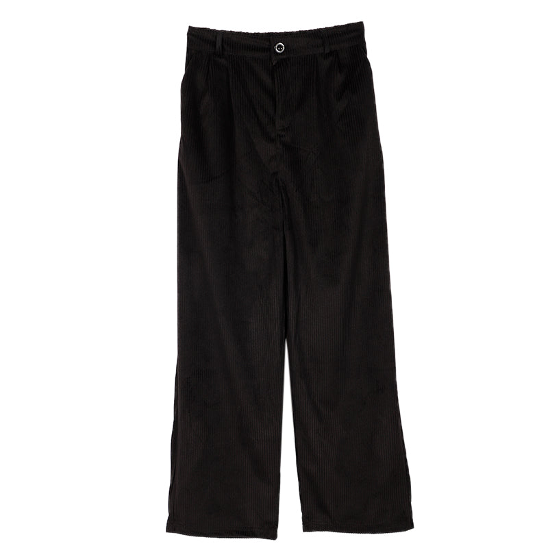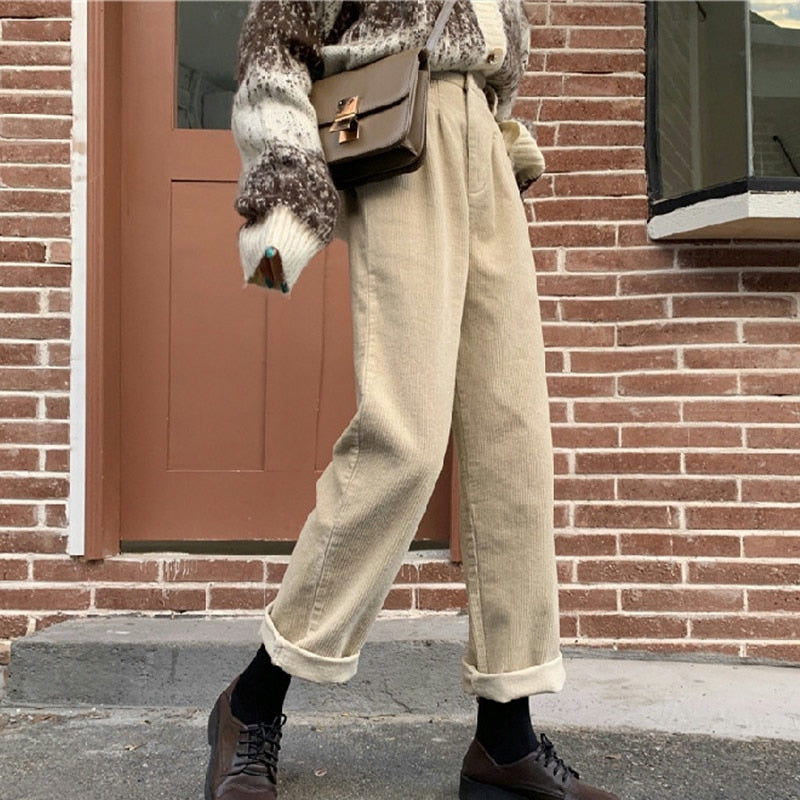 In a relaxed, loose fit, these high-waisted women's pants are perfect for any season. The polyester fabric is soft and comfortable and the solid color ensures that these pants can be worn with any top or sweater. They are fitted at the waist with a button fly.