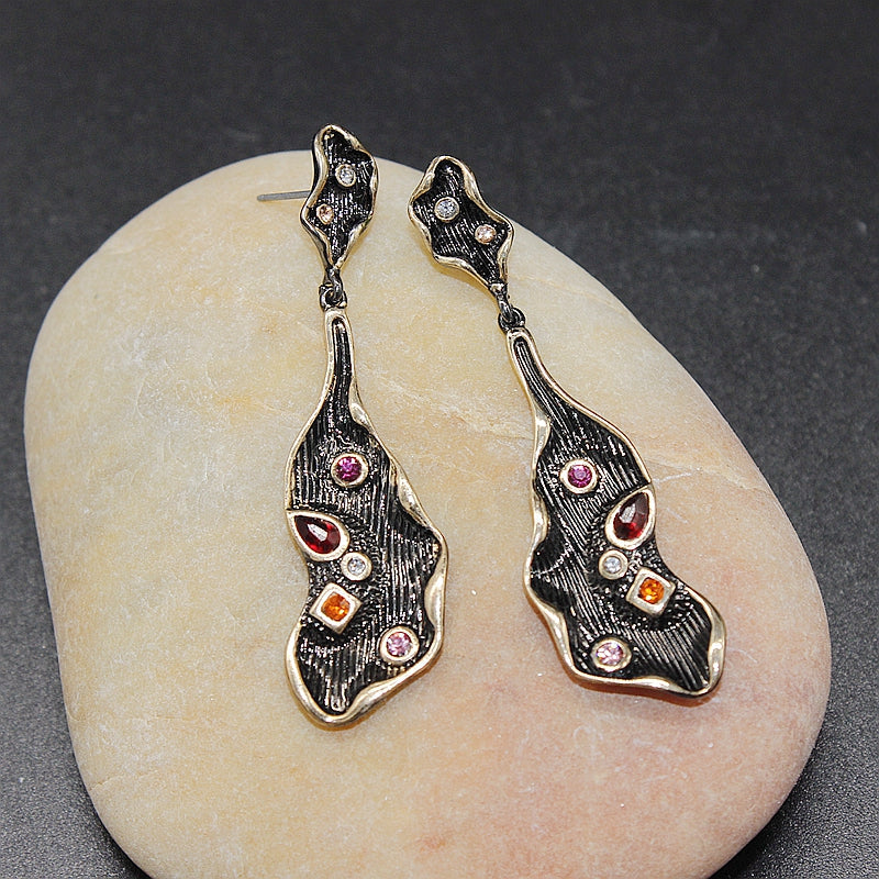 These stunning earrings are perfect for the modern woman who loves to make a statement with her accessories. Made from high-quality zinc alloy, these drop earrings feature a unique geometric design that is sure to turn heads. The neo-gothic style adds a touch of edginess, making them the perfect choice for a night out or a special event.