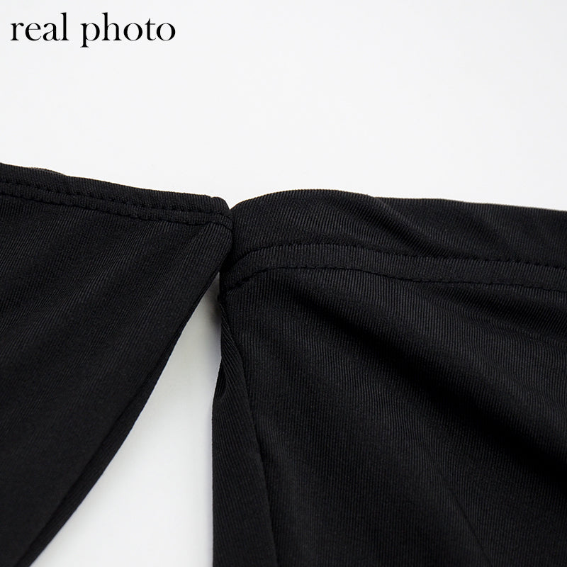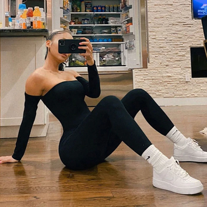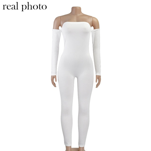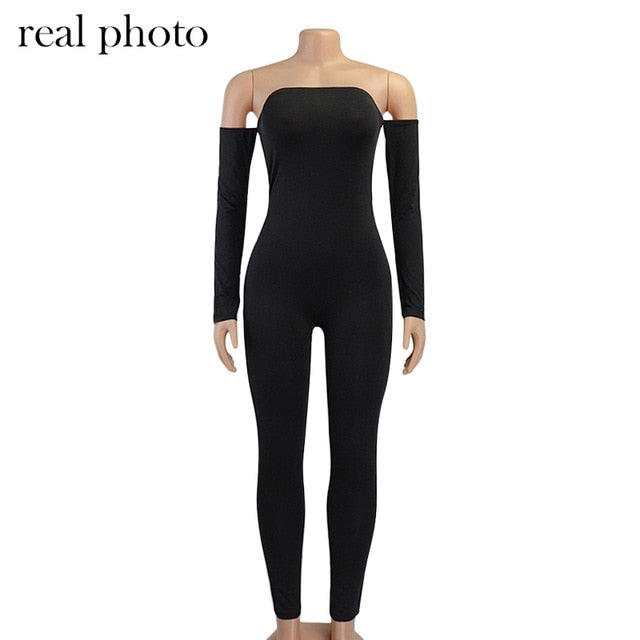 Solid Off-Shoulder Long-Sleeved Polyester Spandex Jumpsuit