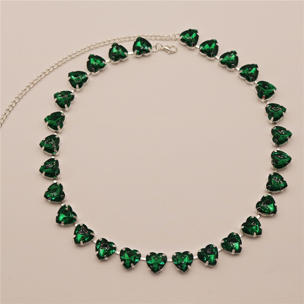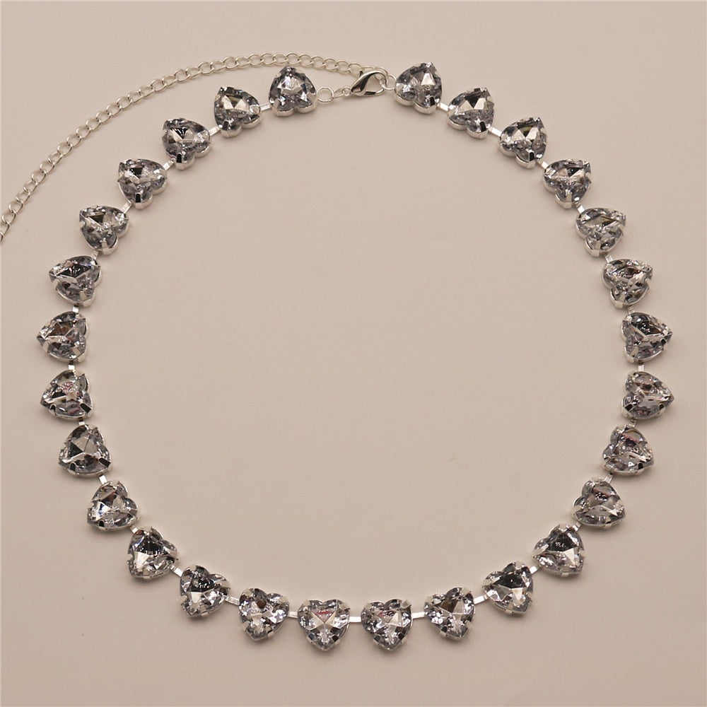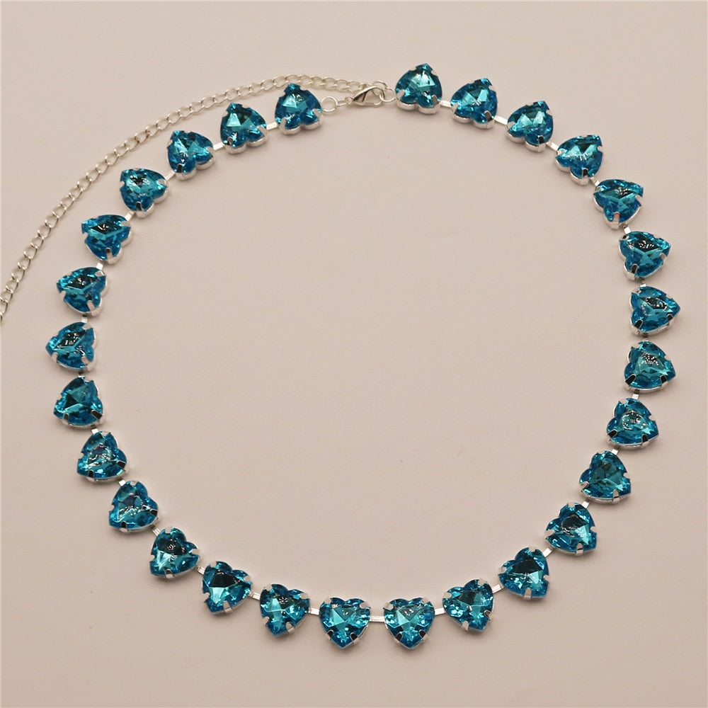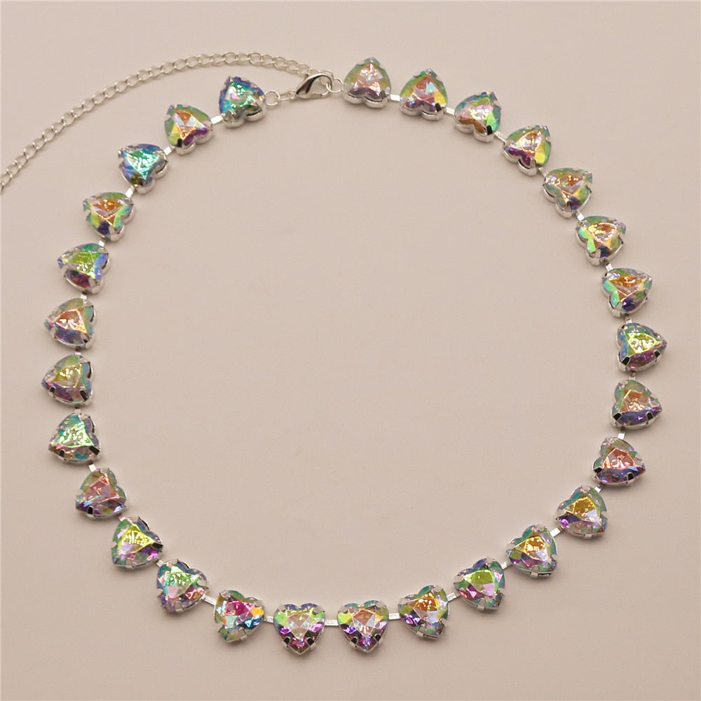 The round heart-shaped rhinestones on this women's necklace sparkle in a variety of colors. This versatile piece can be paired with anything from a cute summer dress to a t-shirt and jeans.