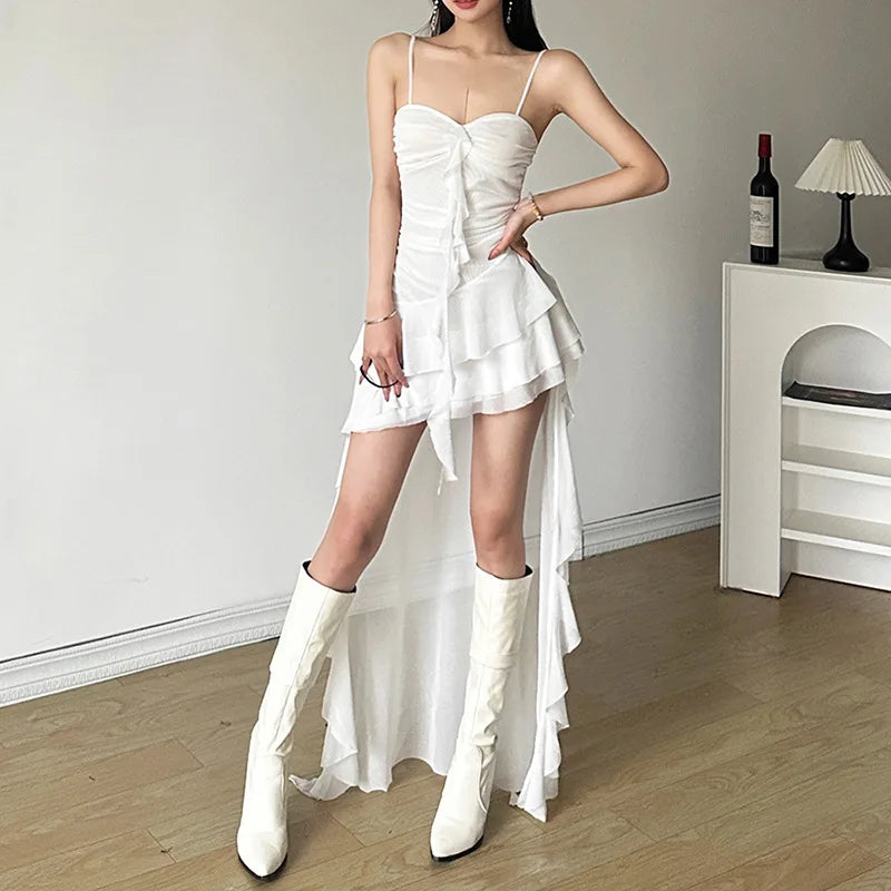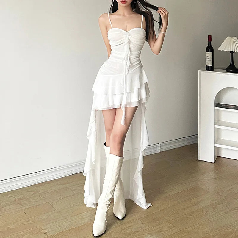 Elevate your wardrobe with this stunning mini dress. Featuring a delicate pattern and flirty ruffles, this sweet style is perfect for any occasion. Made with quality polyester and mesh materials, it offers a comfortable and flattering fit while adding a touch of elegance to your look. Don't miss out on this must-have piece!
