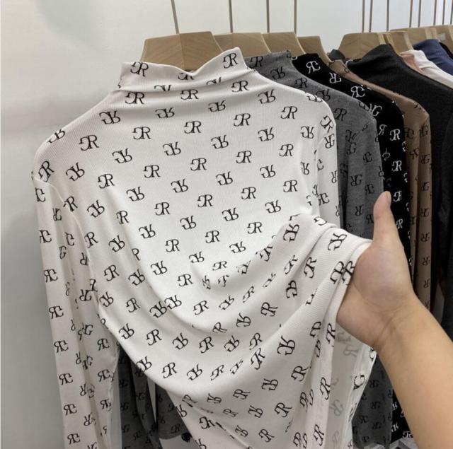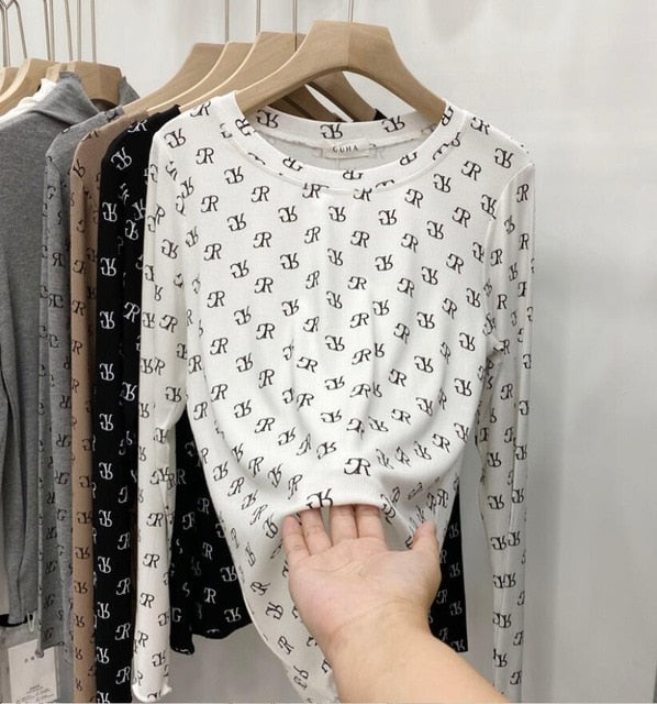 Geometric R Letter Patterned Sweater with O-Neck Collar