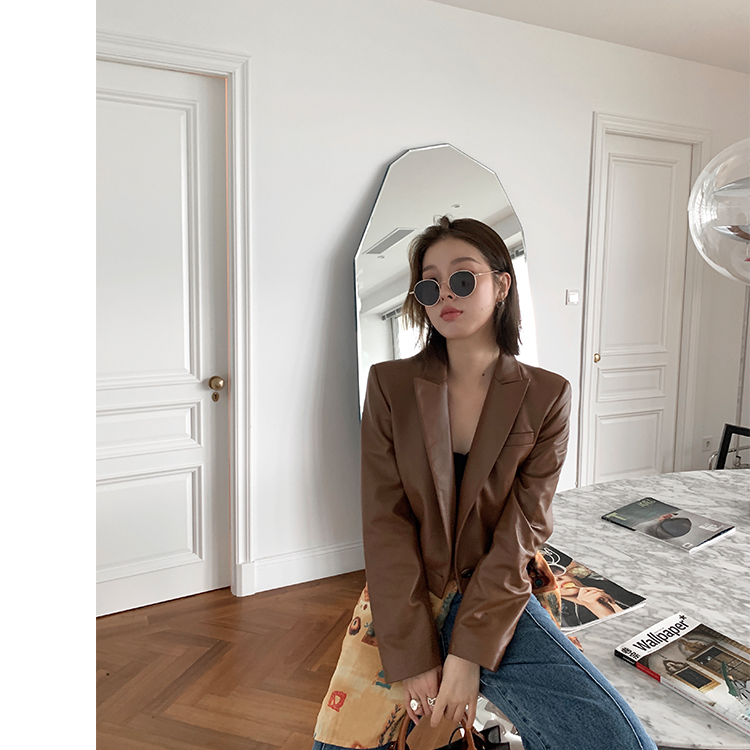 This jacket is made from faux leather that is perfect for both formal and casual wear. The peak-lapel collar and sleeve-button decoration make it a stylish way to make an impression.