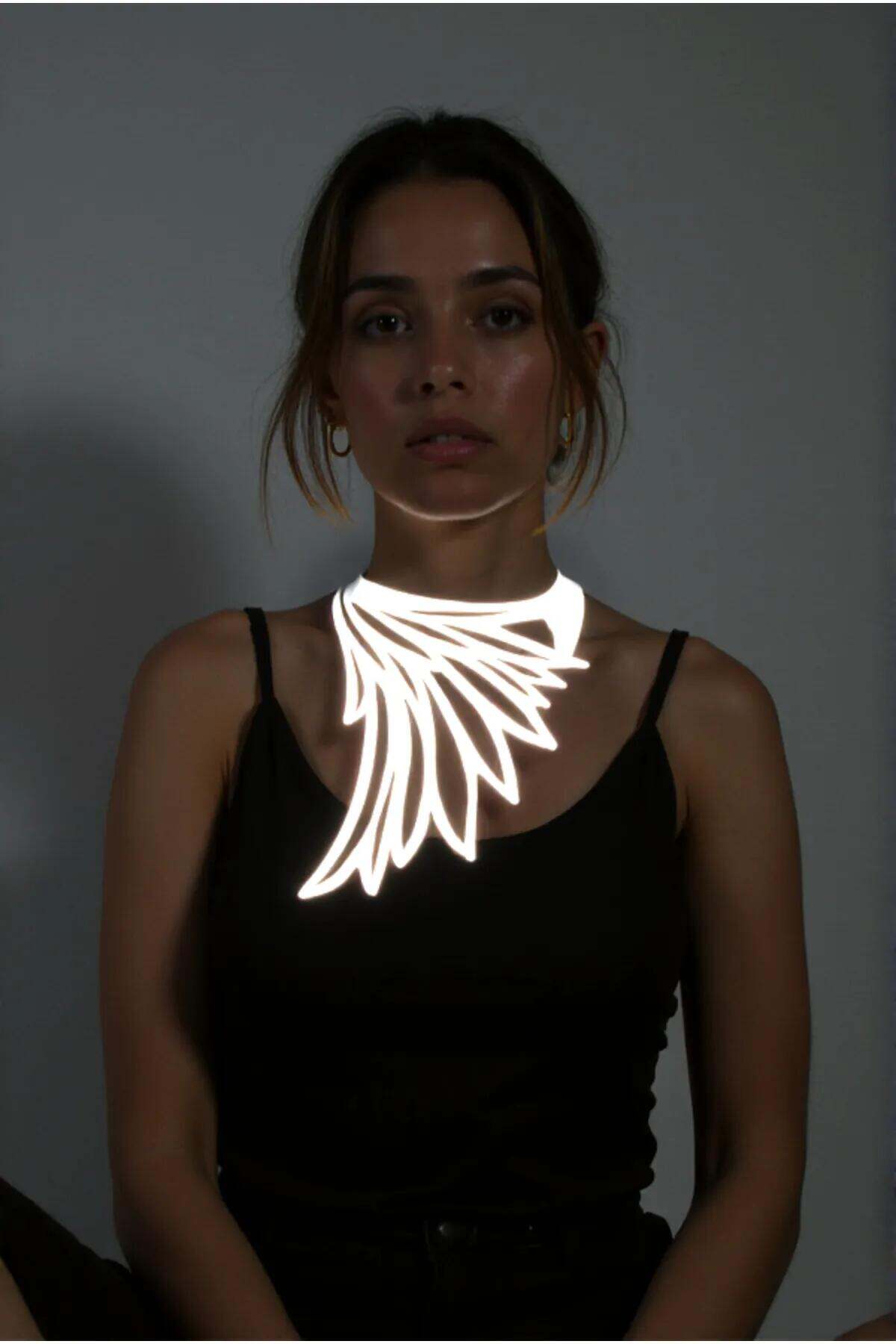 White Reflective Big Bird Wing Choker Necklace, Stylish Laser Cut Necklace