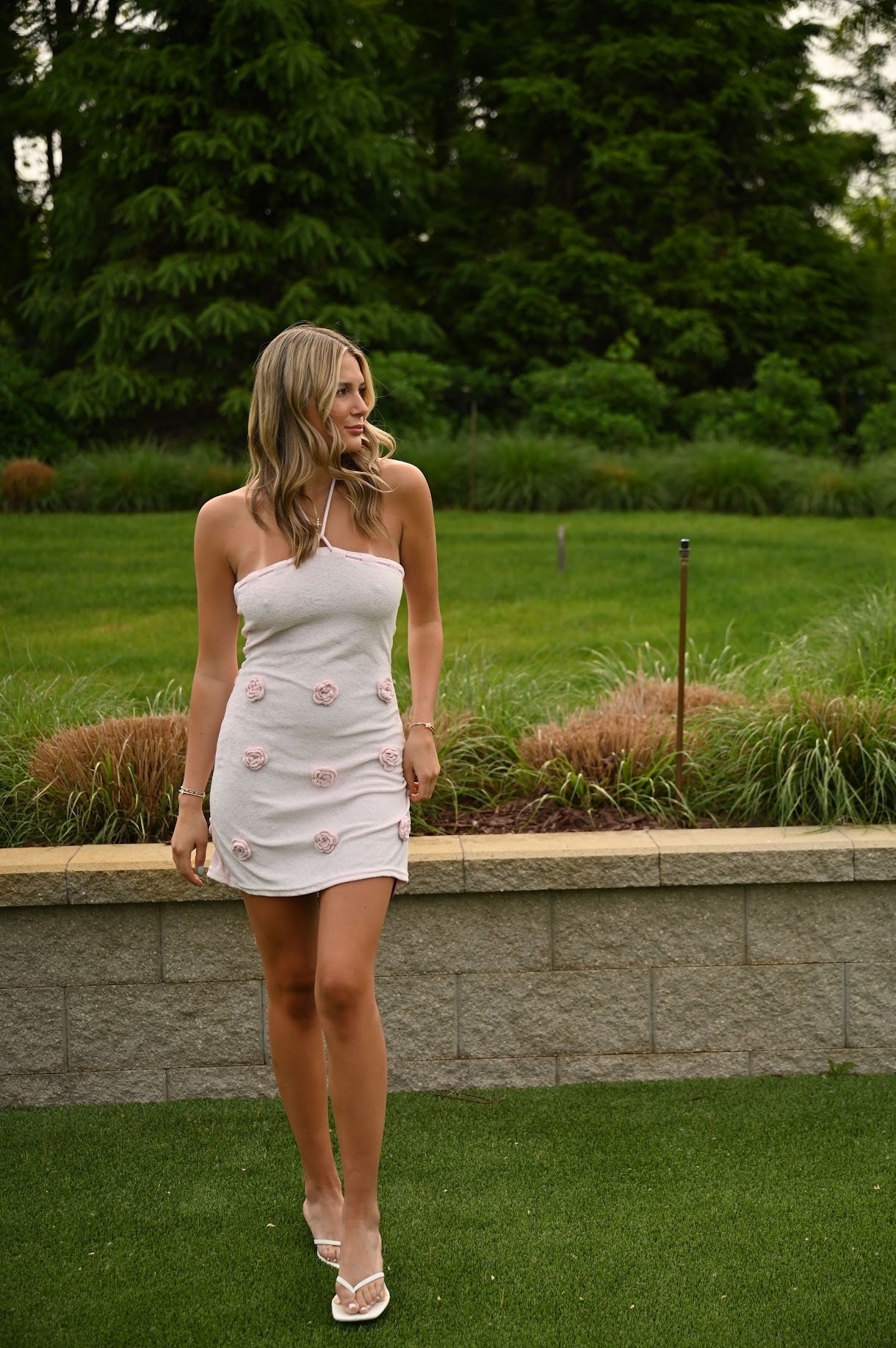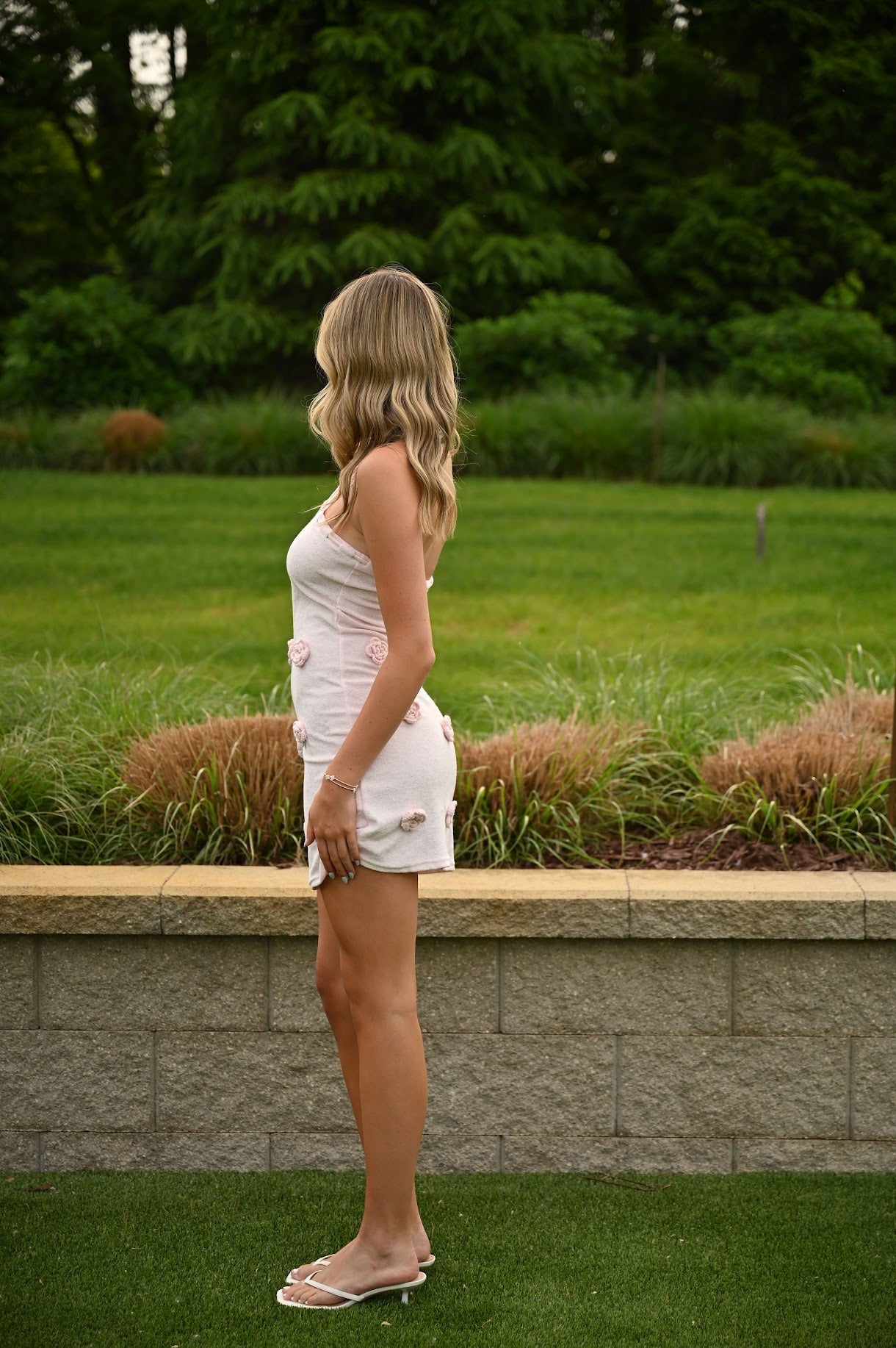 Step into elegance with this strapless pink mini dress! Adorned with delicate floral appliqués and a charming bow tie front, this dress offers a flattering, body-hugging fit. Perfect for date nights or summer parties, it effortlessly combines femininity and style for a chic and captivating look.